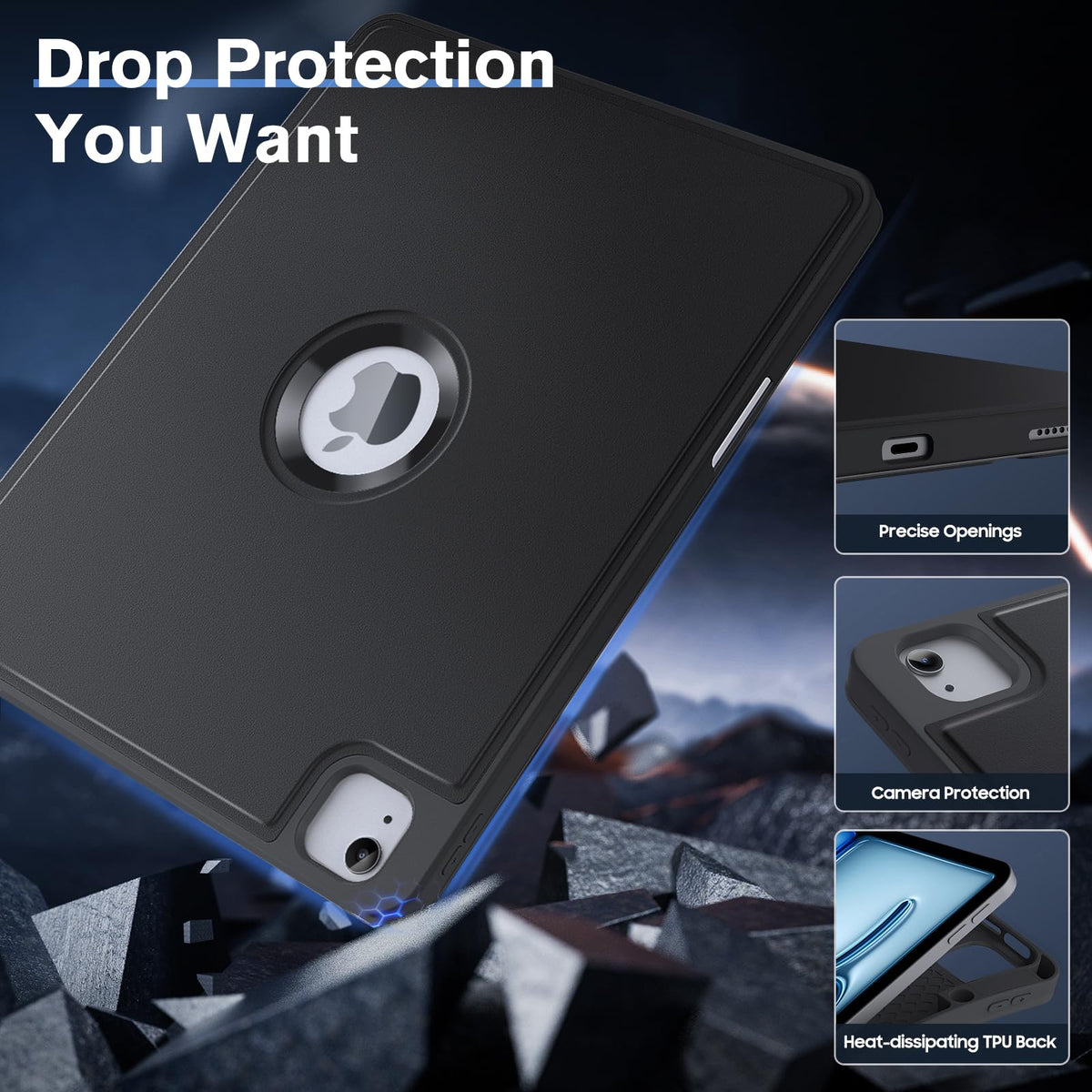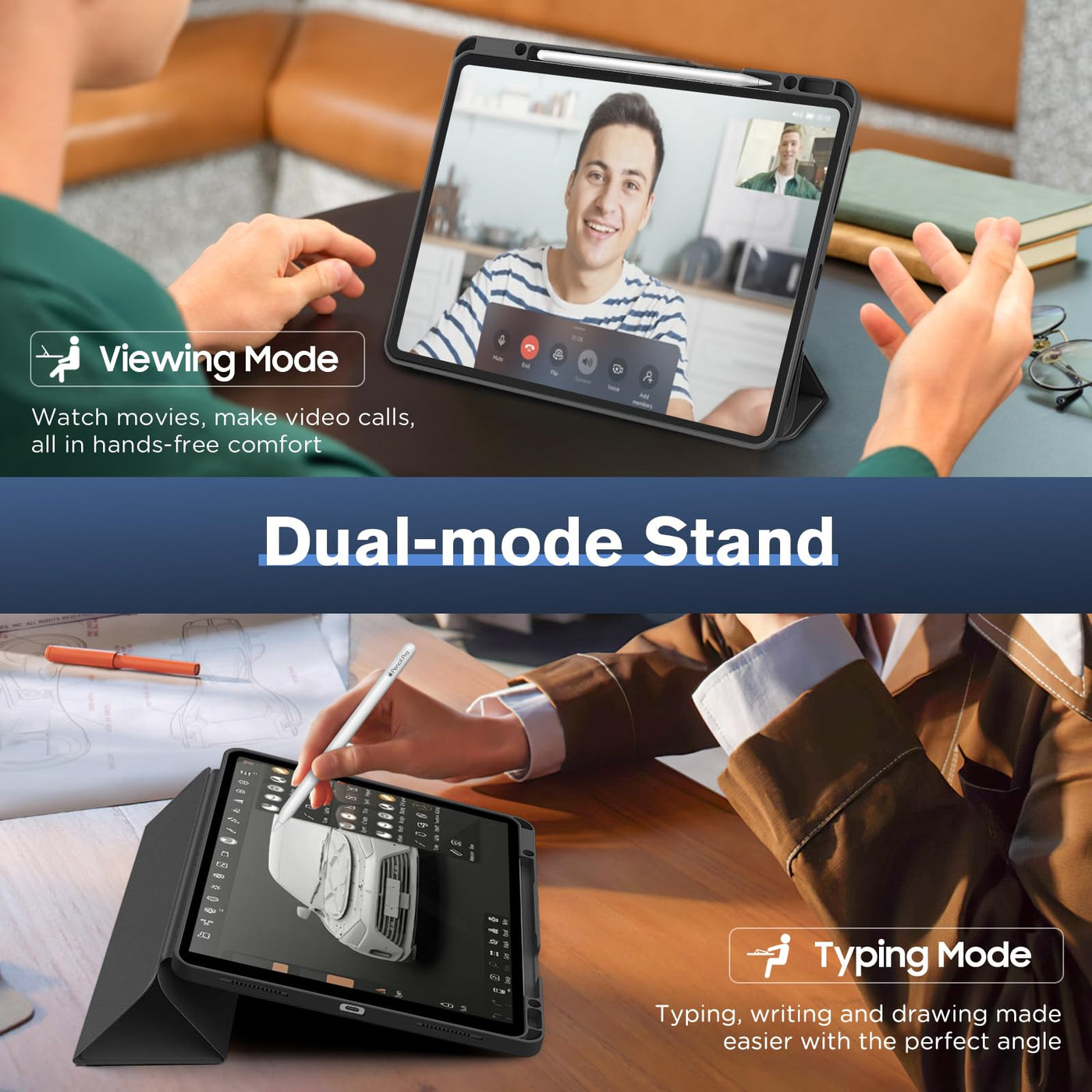 MoKo for iPad Air 13 Inch Case M2 2024/ iPad Pro 12.9 Case (6th/5th Gen 2022/2021) with Pencil Holder, Smart Protective Cover for iPad Air 13 inch with Back Trifold Stand, Auto Wake/Sleep, Black