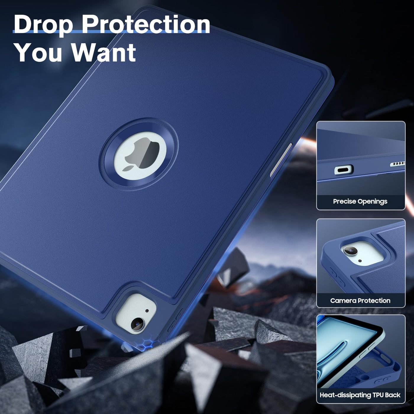 MoKo for iPad Air 13 Inch Case M2 2024/ iPad Pro 12.9 Case (6th/5th Gen 2022/2021) with Pencil Holder, Smart Protective Cover for iPad Air 13 inch with Back Trifold Stand, Auto Wake/Sleep, Navy Blue