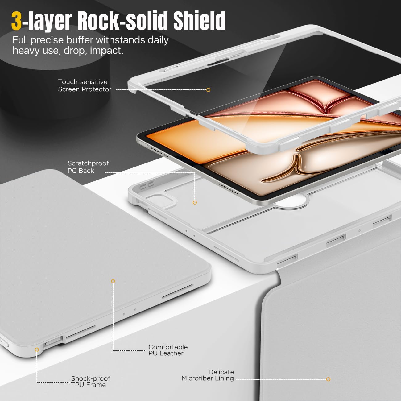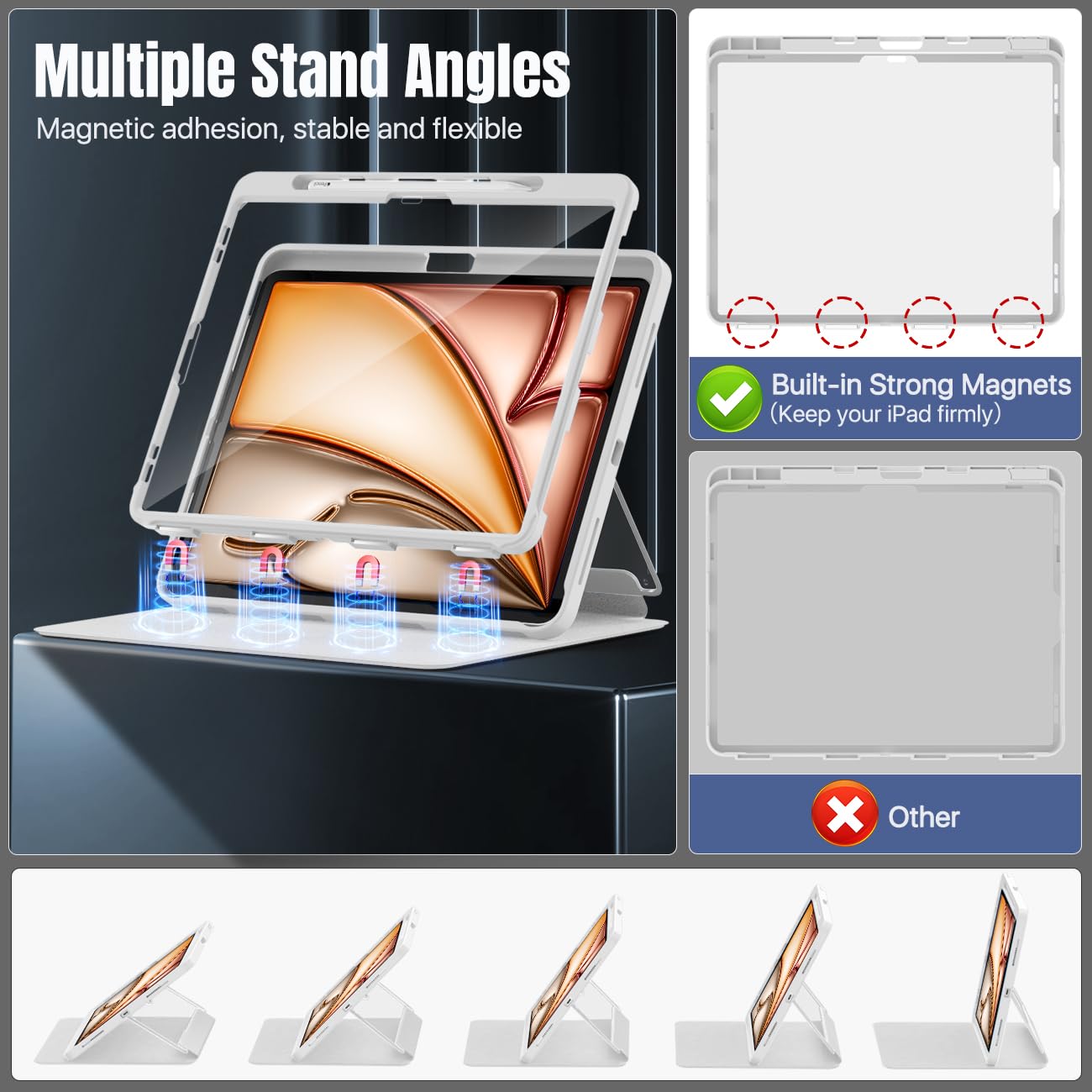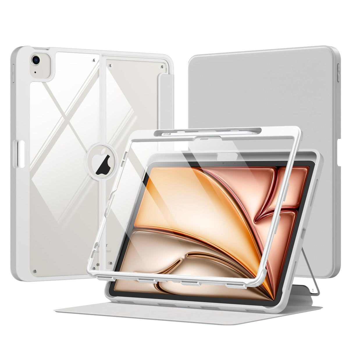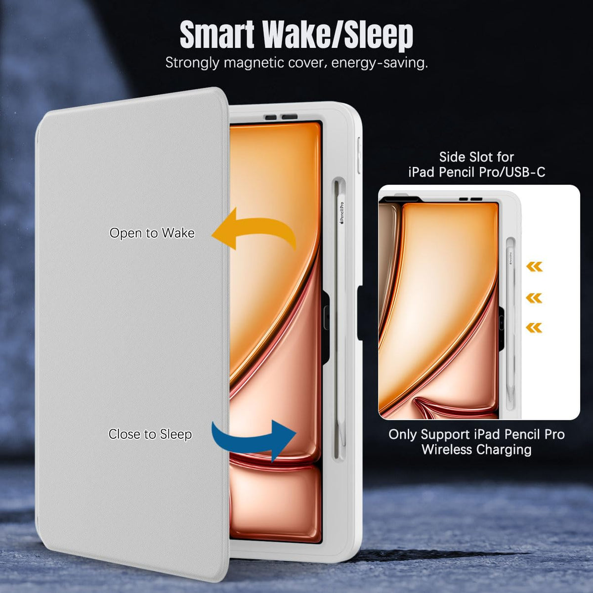 Compatibility: Designed Only Compatible With Ipad Air 13 Inch M3 2025 (Model: A3268, A3269, A3271), Ipad Air 13 Inch M2 2024 (Model: A2898, A2899, A2900); It Is Not Compatible With Any Other Devices. Please Check Back Bottom Of Your Ipad To Find The Model Number | Drop Absorption: Ipad Air 13 Inch 2025 Case With Transparent Hard Pc Back Plate And Flexible Tpu Shock Absorbing Frame, Enhances Drop Protection To Withstand Daily Drops, Bumps And Shocks. Pu Leather Exterior And Soft Microfiber Lining Protect The Ipad Air 13 Inch 2025 From Dust, Fingerprints And Scratches | Screen Protector And Pencil Holder: Ipad Air 13 Case Built-In Full Hd Premium Screen Protector Can Protect The Screen And Maintain A Good Touch Sensitivity. The Pencil Holder Keeps Your Apple Pencil Pro And Usb-C Within Easy Reach And Prevents Loss, Only Supports Apple Pencil Pro Wireless Charging. In Order To Avoid Affecting The Use Of The Product, Please Do Not Attach A Separate Film. (Note: Apple Pencil Pro And Usb-C Not Included) | Multiple Viewing Angles: Built-In Magnets Provide You With Multiple Stable Use Angles, Free Your Hands, Convenient For Viewing, Videos, Typing, Etc. Transparent Pc Back Shell Showcases The Original Beauty Of Your Device, You Can Use Stickers To Diy Your Own Ipad Air 2024 Clear Case | Auto Wake And Sleep: The Magnetic Surface Cover Can Keep The Ipad Air Case 2024 Closed, Also Supports Auto Sleep And Wake Feature; Precise Cutouts Ensure The Case Ipad Air 13 Inch Is Compatible With Your Device. If You Have Any Questions, Please Contact Us In Time