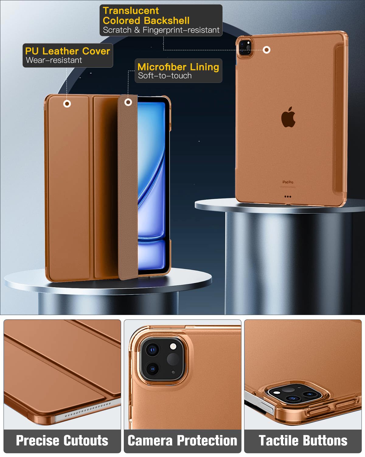 MoKo for iPad Air 13 Inch M2 Case 2024/ iPad Pro 12.9 Case (6th/5th Gen 2022/2021), Slim Smart Shell Translucent Frosted Hard PC Back Cover, Support Touch ID & Pencil Pro/2nd/USB C, Dark Coffee