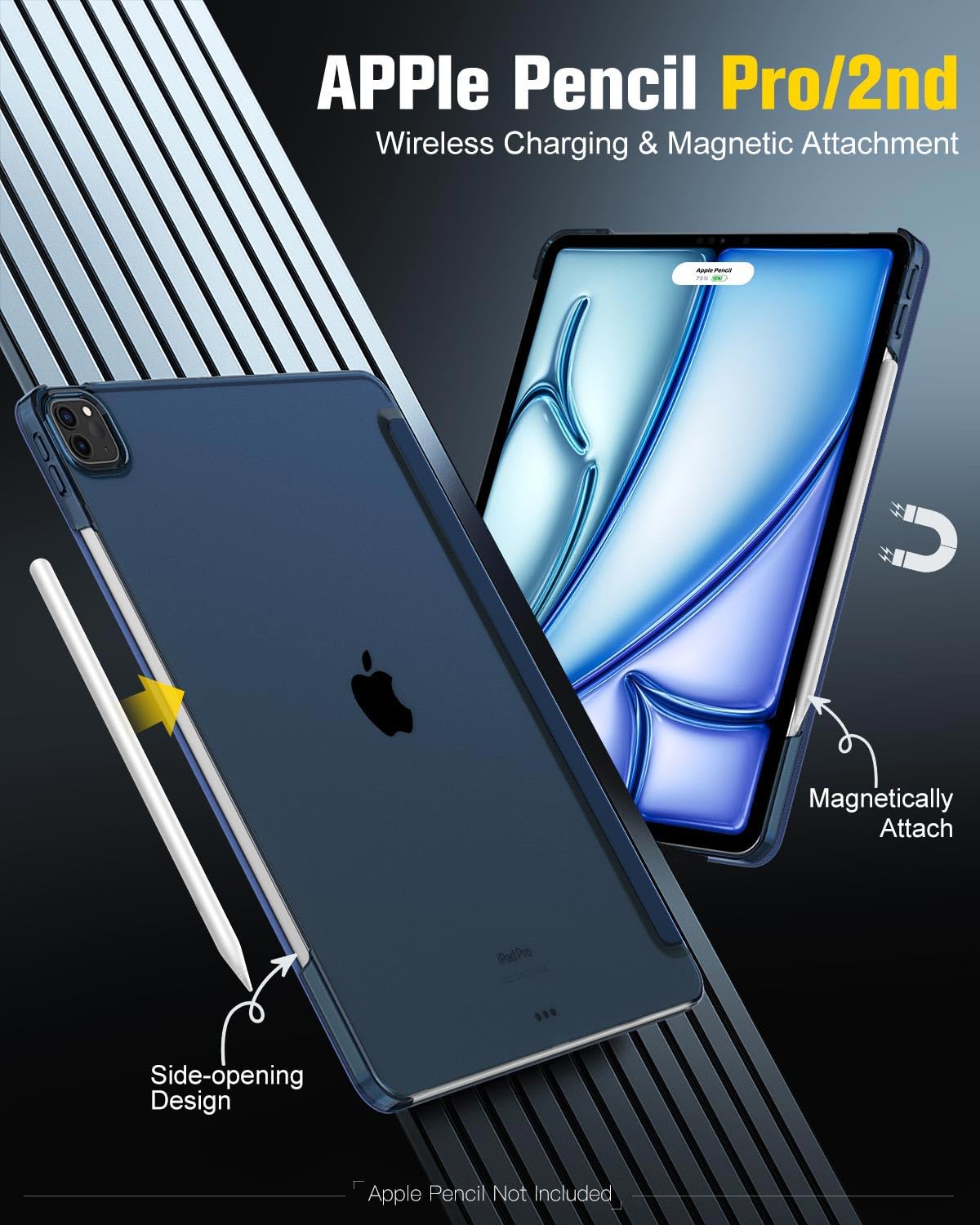 Perfectly Compatibility : Designed exclusively for iPad Air 13 Inch M3 2025 (Model: A3269/A3271),iPad Air 13 Inch M2 2024 (Model: A2898/A2899/A2900), iPad Pro 12.9 inch 6th Generation 2022 (Model: A2436/A2764/A2437/A2766) and iPad Pro 12.9 inch 5th Generation 2021 (Model: A2378/A2461/A2379/A2462); It is Not compatible with any other devices. Please check back bottom of your iPad to find the model number|Apple Pencil Magnetic Attach Charging Supported : Side opening of this iPad Air 13 (M3 2025 & M2 2024)/iPad Pro 12.9 (6th 2022 & 5th 2021) case supports the Apple Pencil Pro /2nd/USB-C attached to your tablet magnetically to pair without taking off the case. Access to all features and controls|Auto Wake/Sleep : Built-in magnetic strip, automatically wakes or puts your iPad Air 13 (M3 2025 & M2 2024)/ iPad Pro 12.9 (6th 2022 & 5th 2021) to sleep when the lid is opened and closed. Protects and extends battery life|Quality Stand Cover : Synthetic exterior and smooth interior with hard PC back shell, Providing excellent protection for your iPad Air 13 Inch M3 2025 & M2 2024/iPad pro 12.9 6th 2022 & 5th 2021 against scratches, impacts, dust and bumps. The tri-fold front cover can support iPad in two standing positions for viewing and easy typing|Well-made Protection : Our iPad Air 13 Inch 2025/2024, iPad Pro 12.9 2022/2021 Case is made of premium PU leather exterior, soft microfiber lining and coverage with translucent hard PC back shell, this case provides total full body protection against fingerprints, shocks, scratches and dust. The translucent frosted back cover allows you to see the icon through your favorite color