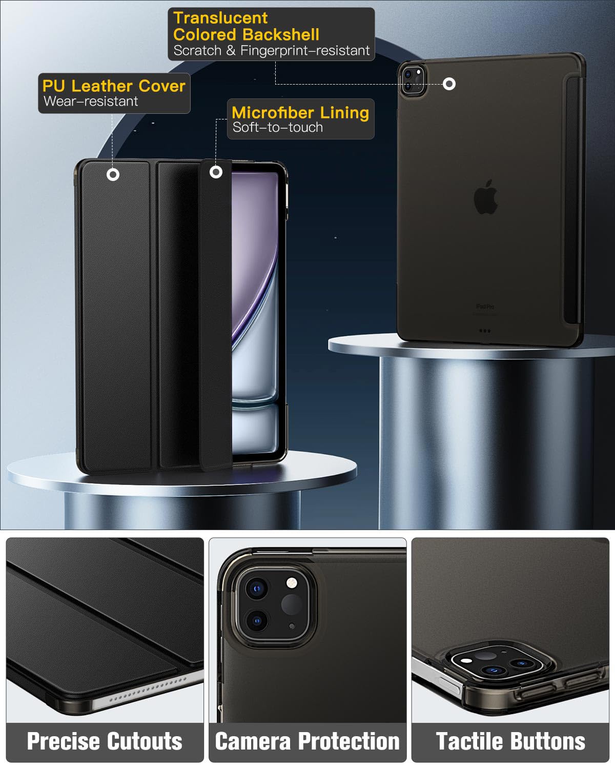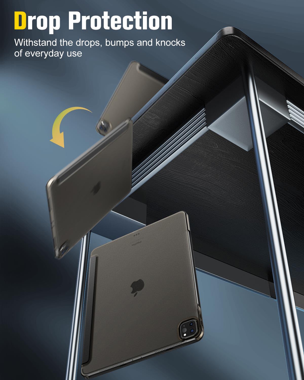 MoKo for iPad Air 13 Inch M2 Case 2024/ iPad Pro 12.9 Case (6th/5th Gen 2022/2021), Slim Smart Shell Translucent Frosted Hard PC Back Cover, Support Touch ID & Pencil Pro/2nd/USB C, Space Black