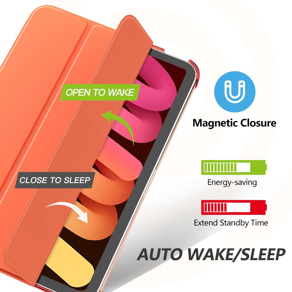 MoKo for iPad Mini 7 (A17 Pro) Case 2024,iPad Mini 6 Case 2021,8.3 inch iPad Mini 7th/6th Generation Case,Slim Lightweight Hard Back Shell Stand Cover for iPad Mini 2024 with Touch ID, Orange