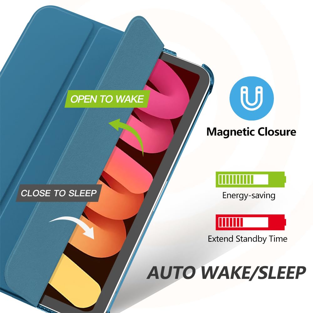 MoKo for iPad Mini 7 (A17 Pro) Case 2024,iPad Mini 6 Case 2021,8.3 inch iPad Mini 7th/6th Generation Case,Slim Lightweight Hard Back Shell Stand Cover for iPad Mini 2024 with Touch ID, Peacock Blue
