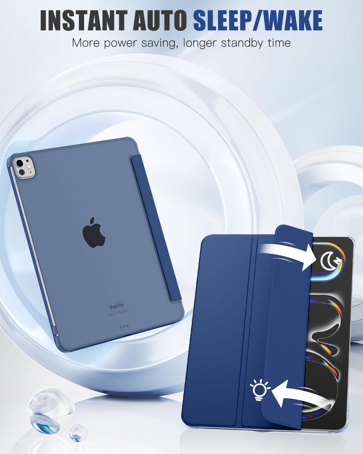MoKo for iPad Pro 11 Inch Case M4 2024 (5th Gen), Ultra Slim Stand Case with Hard PC Translucent Back Shell Cover for iPad Pro 11'' 2024 Model (A2836/A2837/A3006), Support Apple Pencil Pro, Navy Blue
