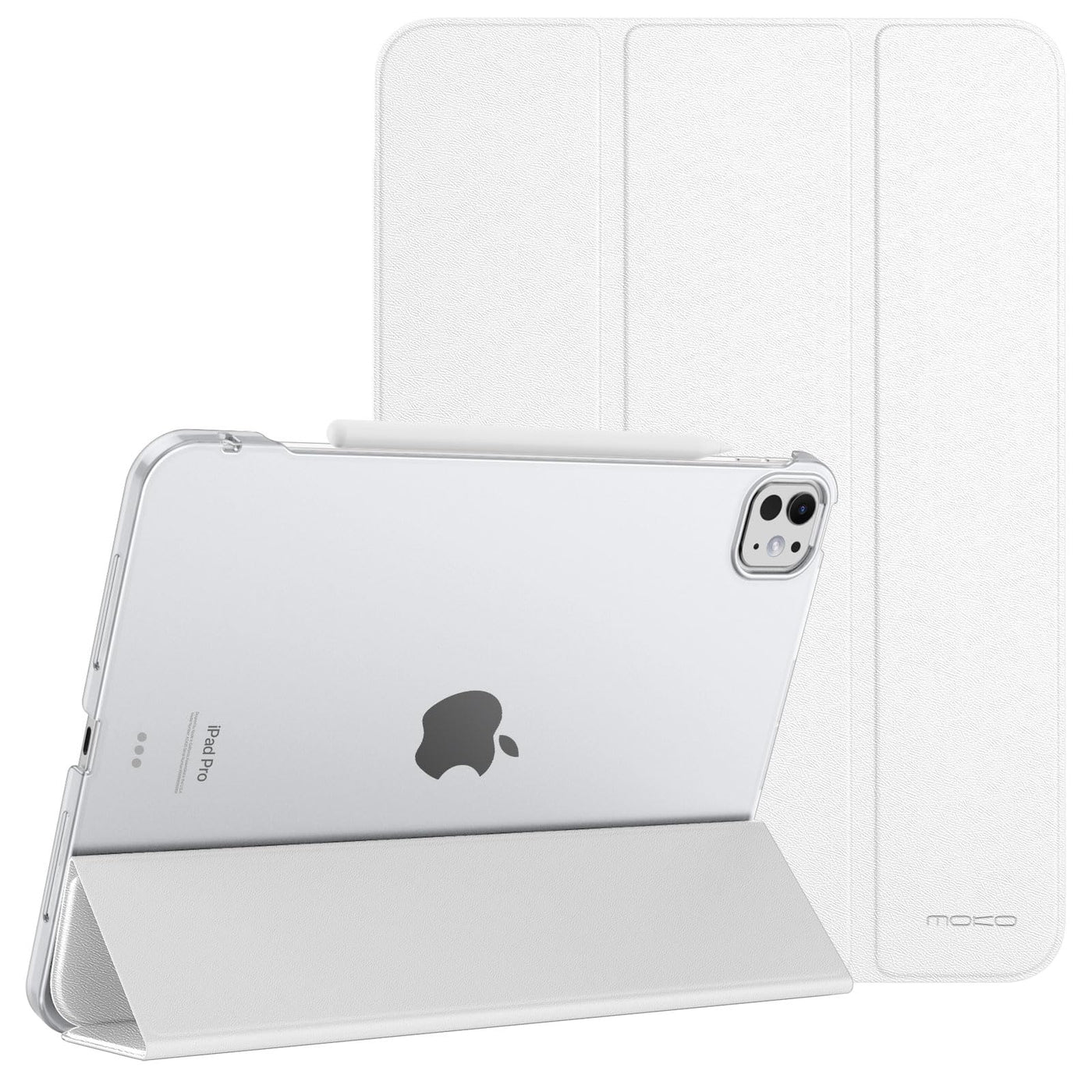 MoKo for iPad Pro 11 Inch Case M4 2024 (5th Gen), Ultra Slim Stand Case with Hard PC Translucent Back Shell Cover for iPad Pro 11'' 2024 Model (A2836/A2837/A3006), Support Apple Pencil Pro, White