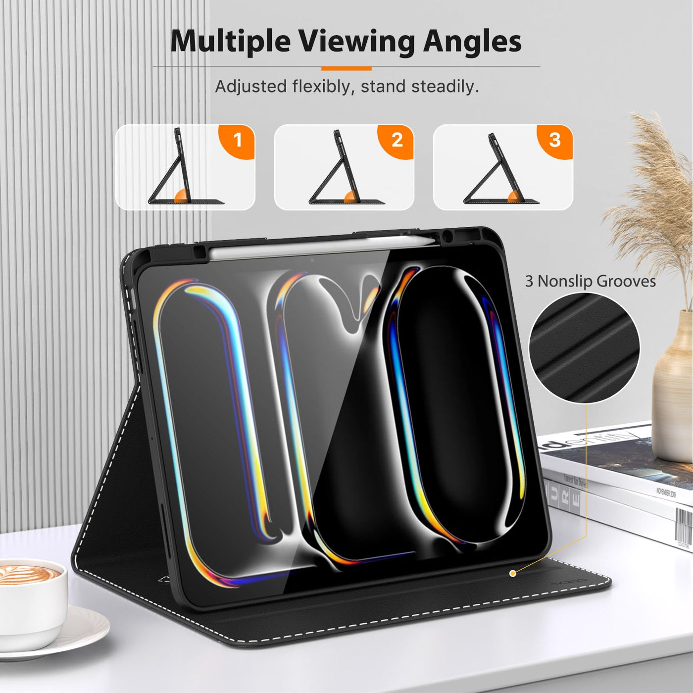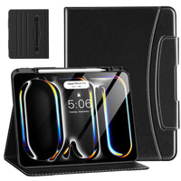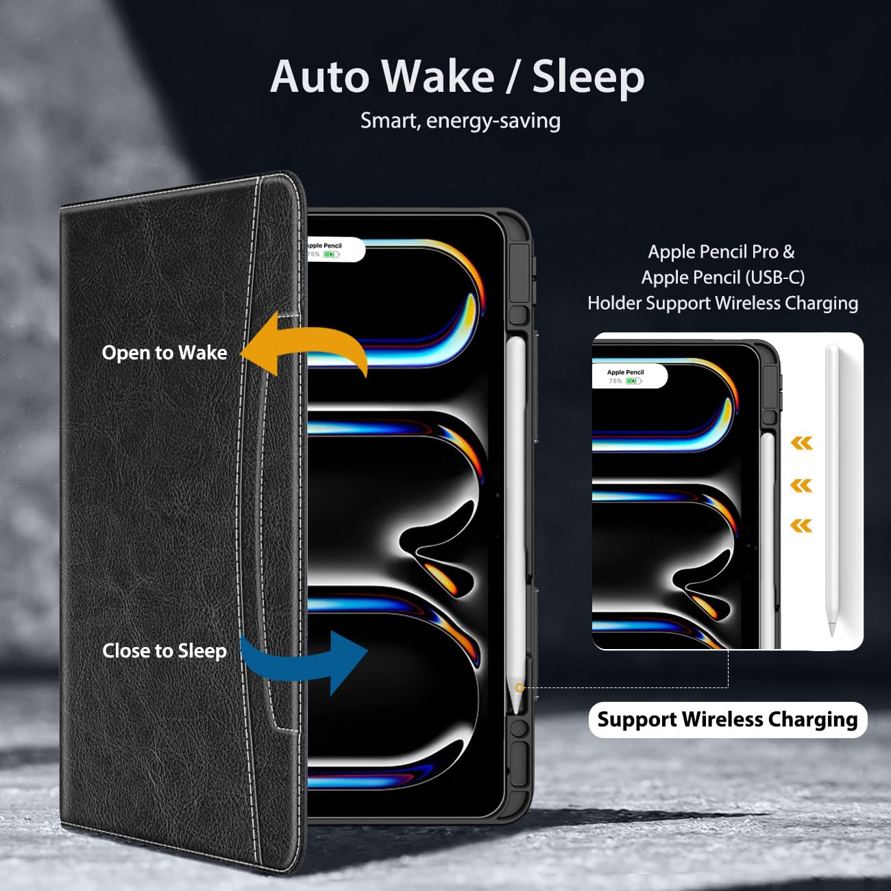 MoKo for iPad Pro 13 Inch Case 2024 (M4) with Pencil Holder & Pocket, Built in Hand Strap, Multi Angle Viewing, Premium PU Leather Folio Cover for iPad Pro 13 2024, Black