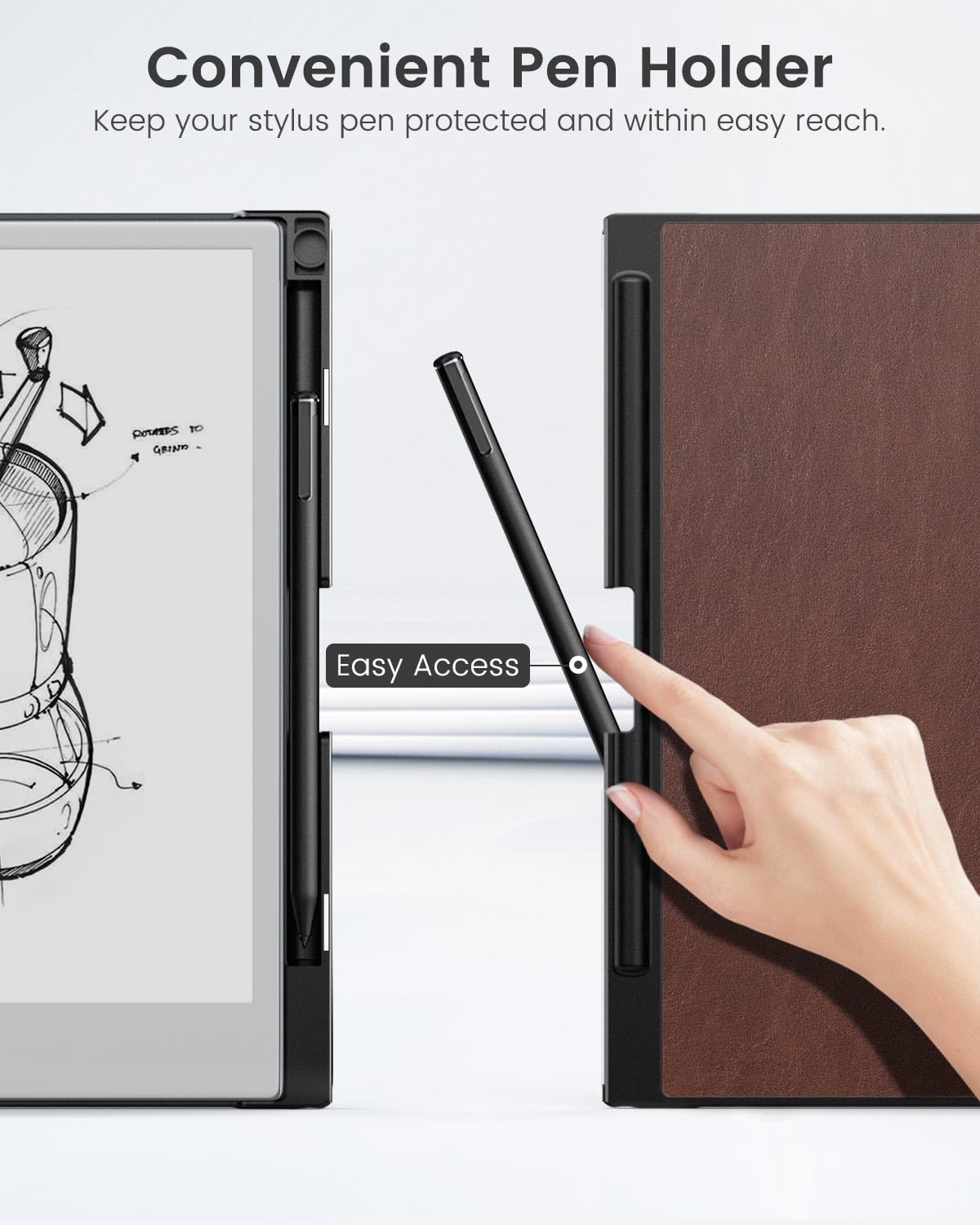 MoKo for Remarkable 2 Case, Lightweight and Hard Back Shell Protective Case with Built in Pen Holder, Smart Tablet Cover Folio for Remarkable 2 Tablet 10.3' 2020 Release, Reddish Brown
