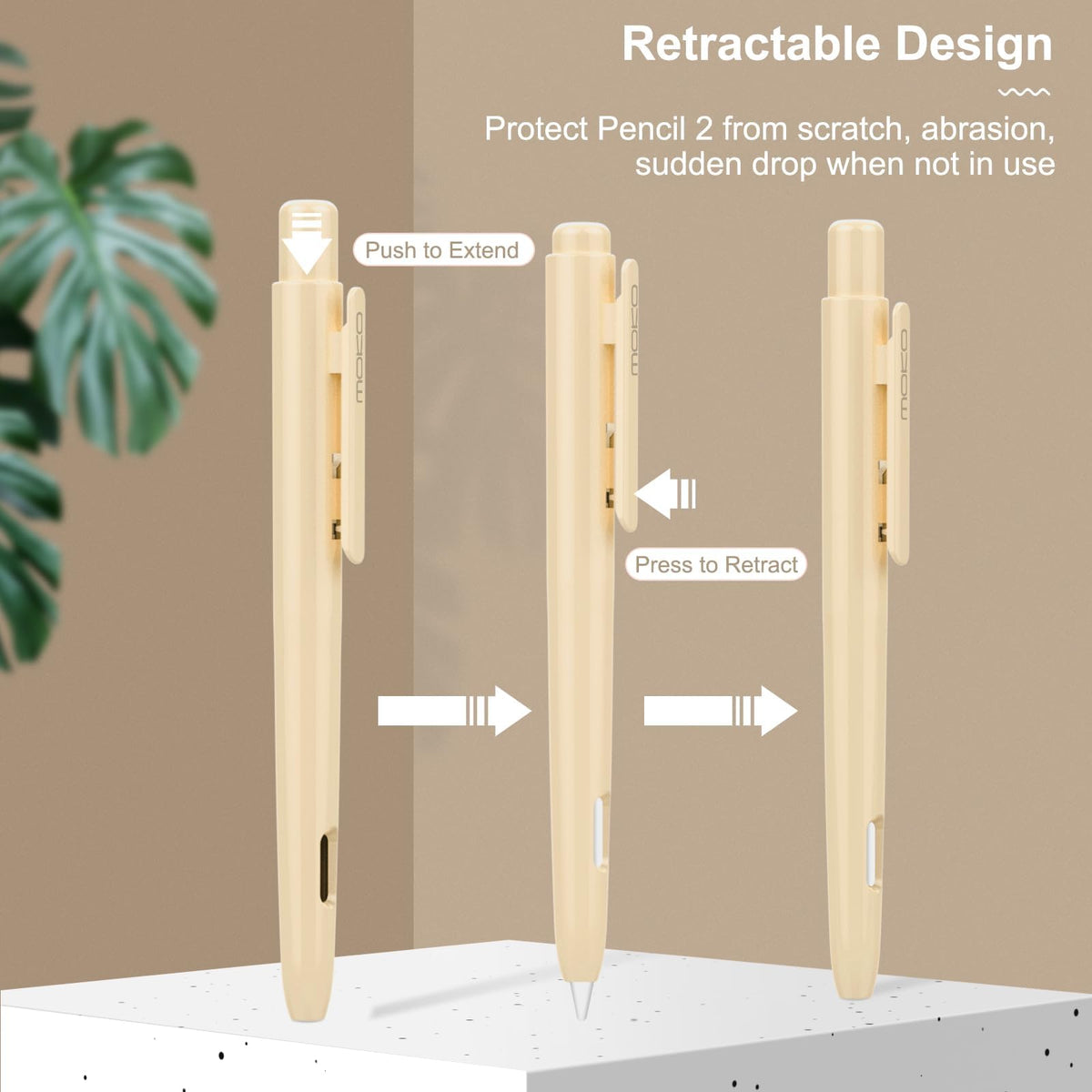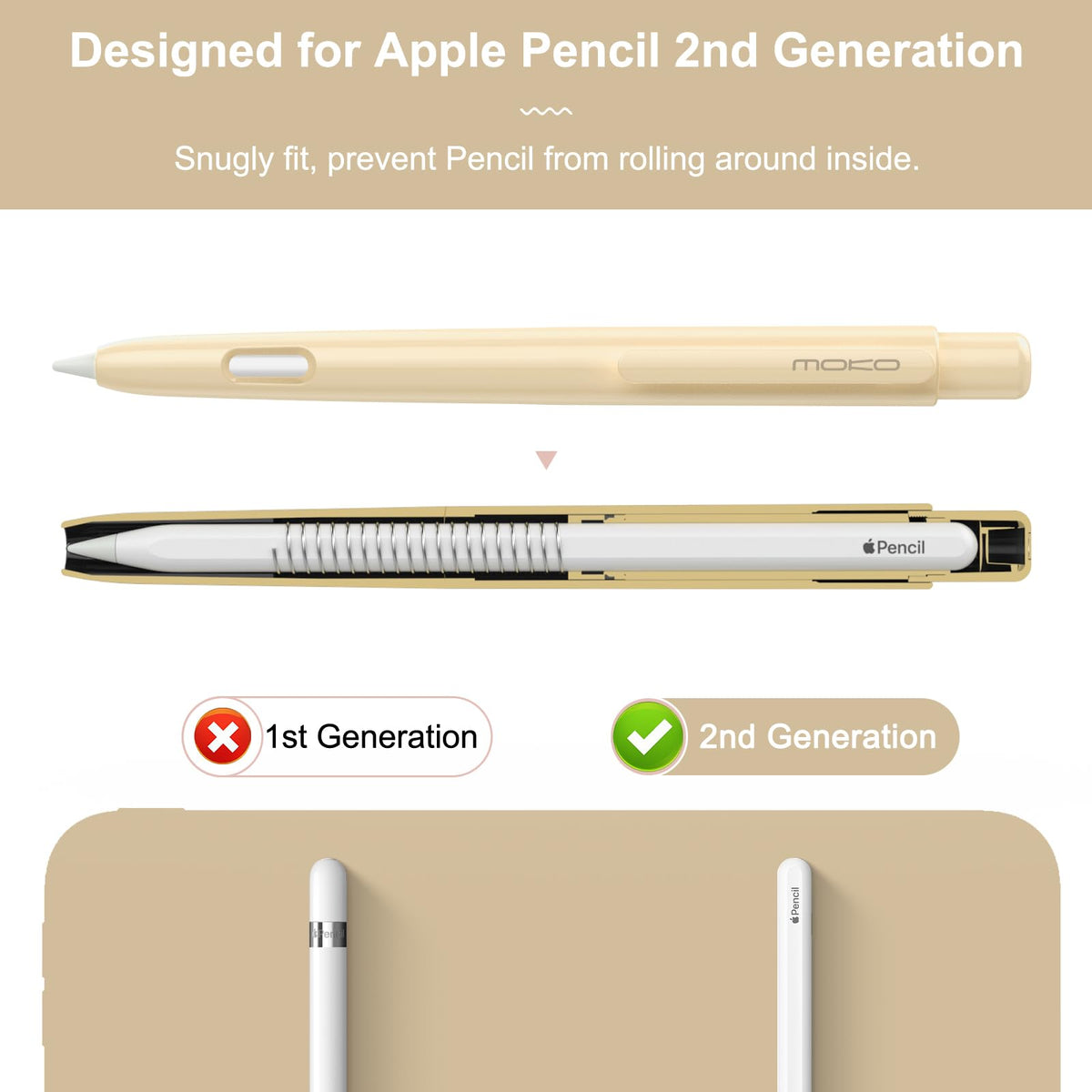 MoKo Holder Case Compatible with Apple Pencil 2nd Generation, Retractable Protective Apple Pencil Cover with Sturdy Clip, Hard PC Apple Pencil Case, Support Double Tap, Beige