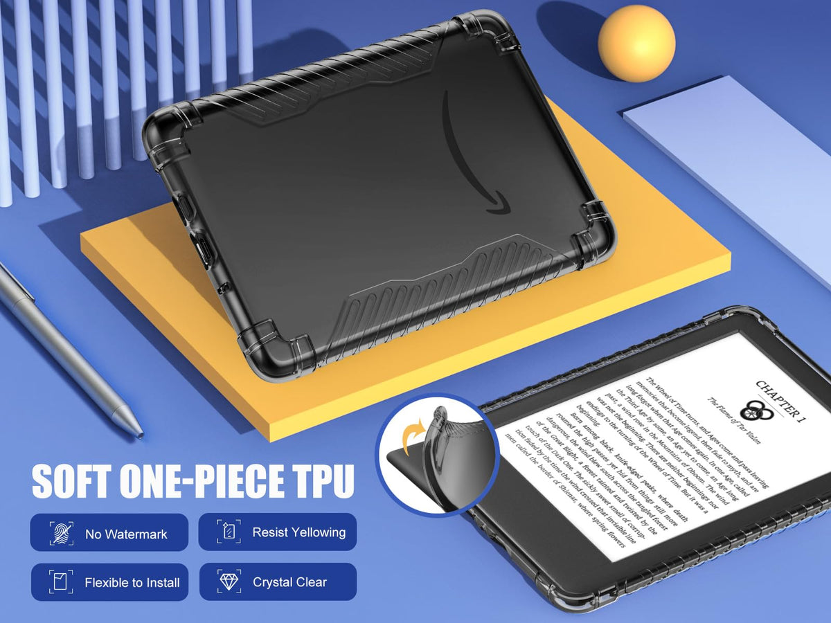 MoKo Protective Case for 6' All New Kindle (11th Generation 2024/2022 Release), Ultra Clear Soft Flexible Transparent TPU Skin Bumper Back Cover Shell, Black