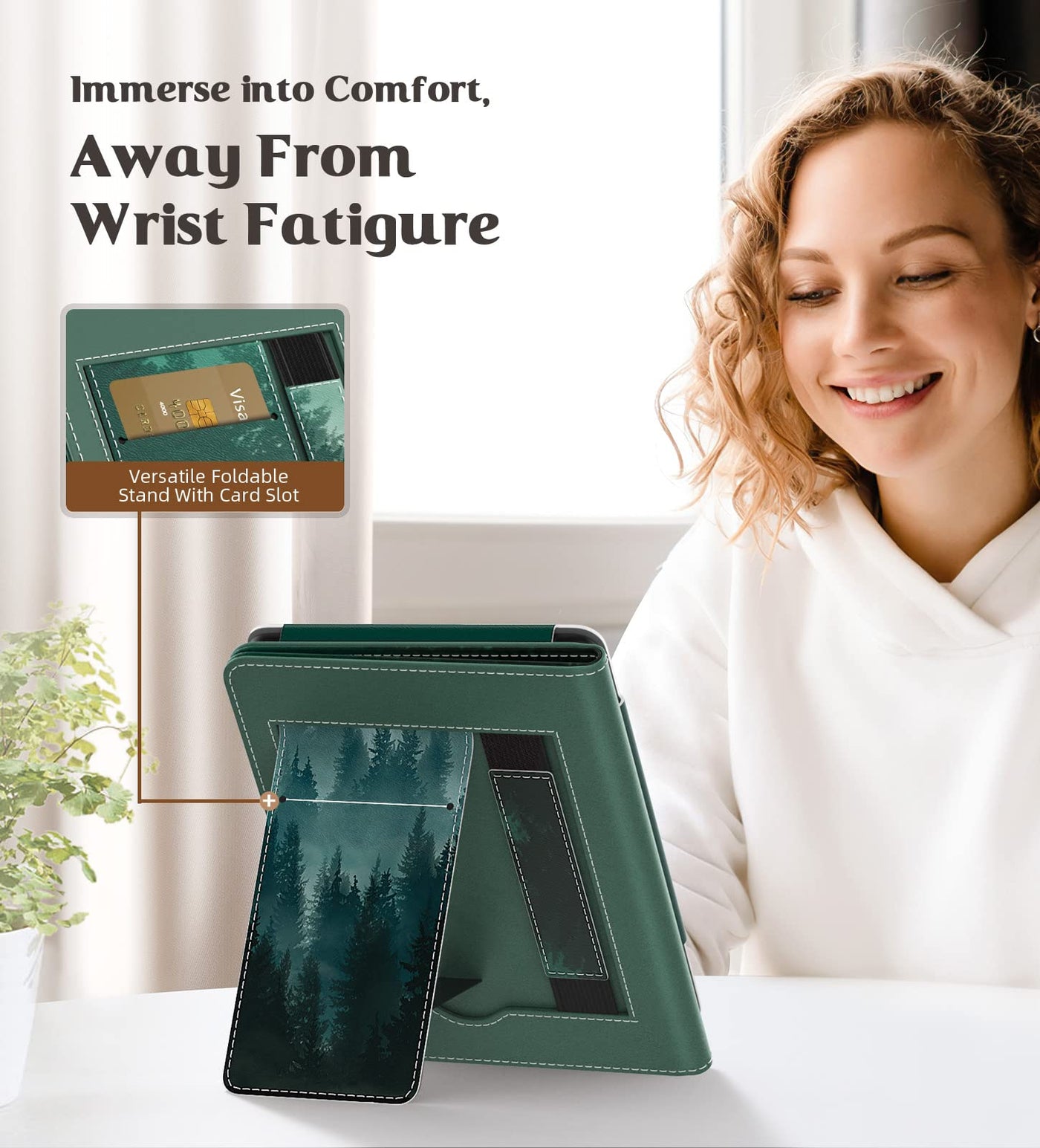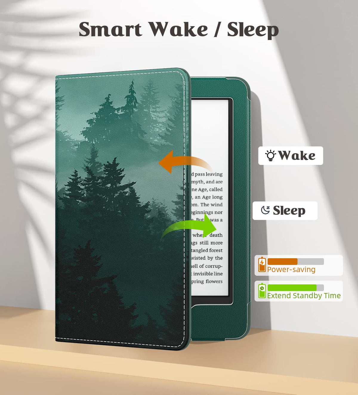 Moko Slim Pu Shell Cover Case For Kindle Paperwhite 2021, Green Forest, Protective And Lightweight
