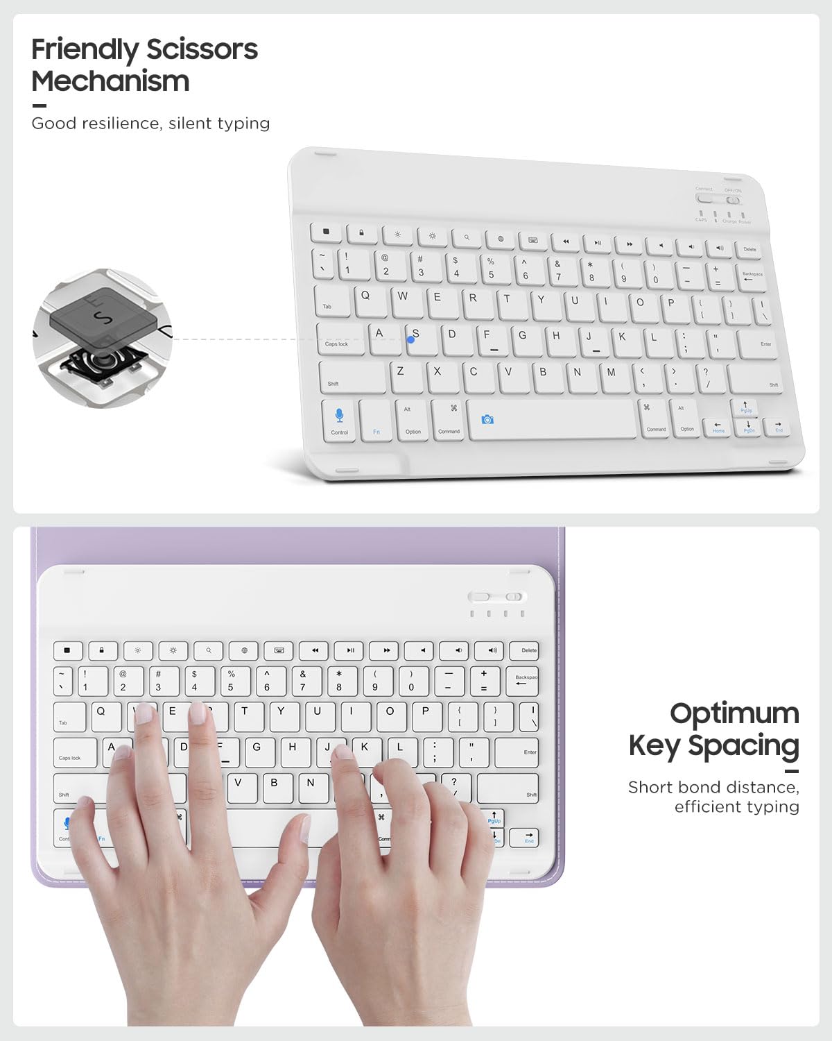 Compatibility: Our Product Is A Tylish And Portable Universal Keyboard Case That Widely Compatible With 9 - 11 Inches Tablet, &Nbsp;Including: Ipad 9.7/10.2/10.5/10.9/11 Inch, Samsung Galaxy Tab 9.7/10.4/10.5 Inch Tablet A8,S6, And Moreour Prodcut Is Compatible With Ios Version13+ And Android Tablets. Tablets Must Be 6.2-7.08&Quot; Wide (160-180 Mm) &Amp; 9.05-10.2&Quot; Long (230-260 Mm).Our Product Features With:Compact And Functional 2-In-1 Design.With A Wide Opening For Cameras.With A Side-Pocket For Storing Small Items.With A Pen Loop For Storing Capacitive Stylus Pen.The Premium Quality Pu Leather Boosts A Classy Look.With A Built-In Stable Tablet Stand For Holding Your Device.Full Coverage Cover With Pu Leather Soft Microfiber Lining For Protecting Your Device From Bumps, Shocks And &Nbsp;Scratches.Removable Bluetooth Keyboard Delivers Wireless Operation And Fast Typing Speed.Troubleshooting: If You Are Unable To Connect The Keyboard To Your Tablet, Please Try The Following: 1. Starting With A Full Charge On Both Devices Ensures That Process Wont Be Interrupted By A Low Battery. 2. Check Your Tablet'S Bluetooth Is On. 3. Make Sure That The Keyboard Is Within The Effective Operation Distance Of 33 Feet (10 M).