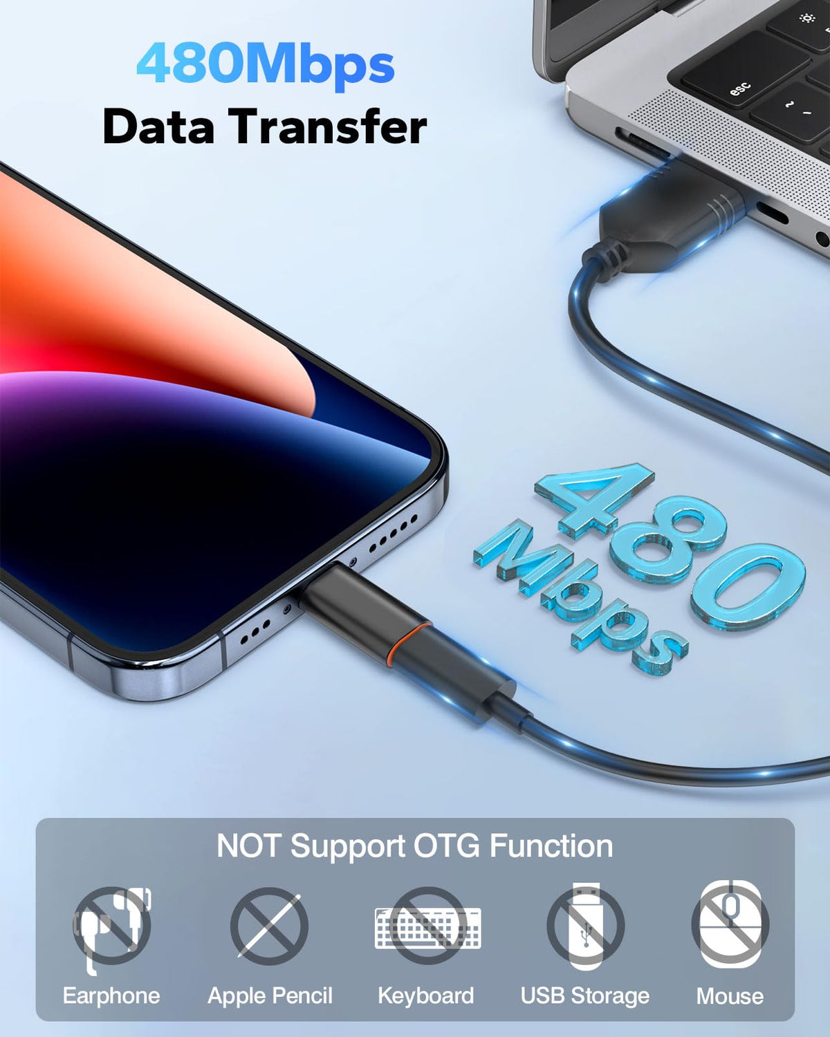 Charging and Transmission 2-in-1: This USB C to lightning adapter supports 27W PD (DC9V/3A) PD fast charging, which can quickly charge the device, much faster than other 2.2A Adapters on the market. Provides data transfer rate up to 480 Mbps, making iPhone devices or iPads directly compatible with USB-C to USB-A cable and USB-C to USB-C cable. Saves your time and bring you more convenience. | Not For OTG and Audio: This USB C female to lightning male adapter only supports charging and data transfer between devices. Do not support OTG video and audio functions. Do not support headphones, Pencil 1st generation, mice, keyboards, USB flash drives, card readers, printers, microphones, HDMI converters, cameras. | Broad Compatibility: Charges your i-OS devices via a Type-C cable, saving the trouble of carrying an extra lighting cable., compatible with iPhone 14/13/12/11/XS/XR/SE, iPad Mini 5/4/3/2 Gen, iPad 9/8/7/6/5/4/3/2 Gen, iPad Pro 12.9 2017/2015, iPad Pro 10.5'/9.7', iPad Air 3/2, iPod Nano 7, iPod Touch 5, AirPods and other Apple devices with lightning port. | No Damage to Your Phone: The Lightning male to USB C female Adapter has a built-in identification resistor, which can automatically and intelligently match the current to your device, making charging safer. And with an aluminium alloy shell, ensuring durability, heat dissipation and a long life span. | Plug and Play, A Reliable Partner: Minimal design, no additional drive or installation required. Lightweight and portable design, whether you are at home, in the office, in the car or traveling, it is the ideal adapter or replacement. Package includes 2pcs USB-C to Lightning adapters.