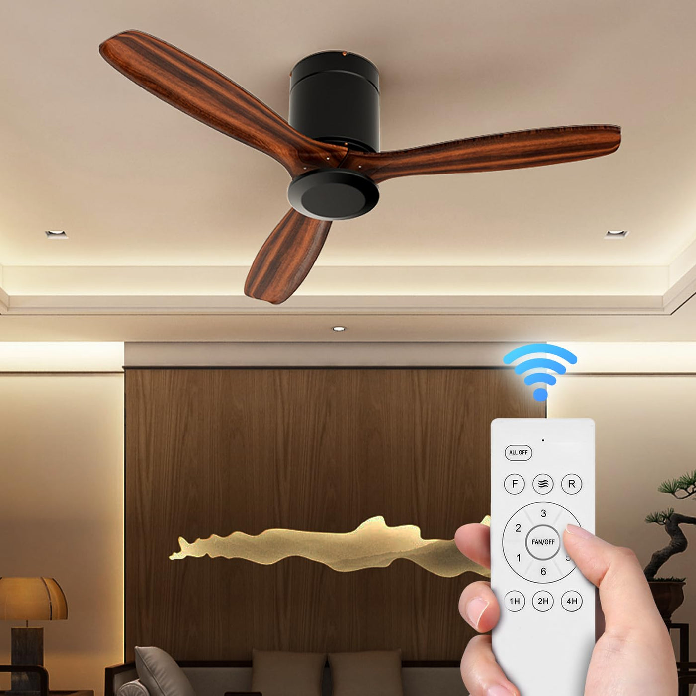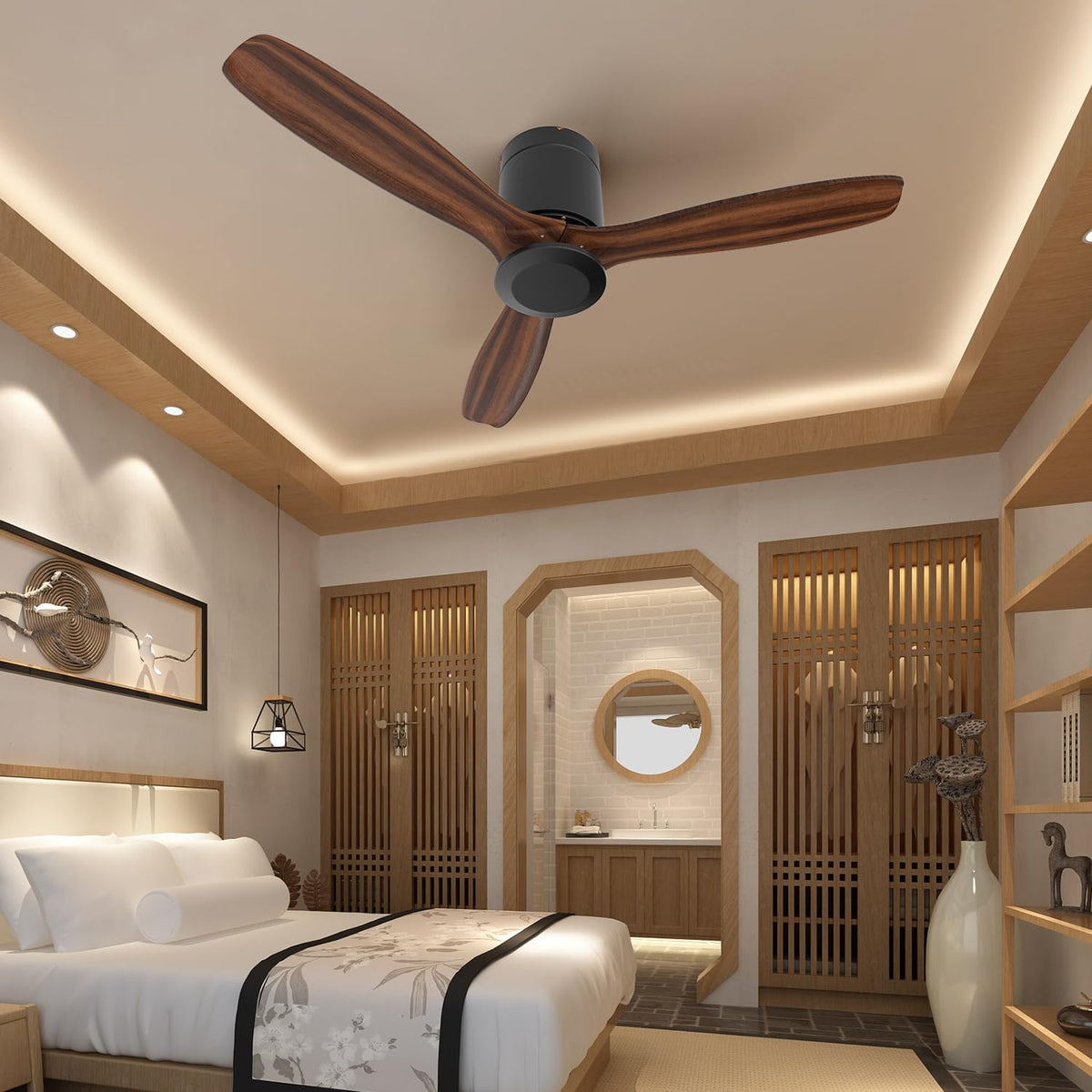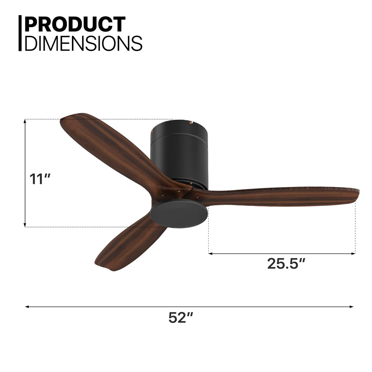 Mollie 52'' Low Profile Ceiling Fan With Remote, 3 Wood Blades Modern Ceiling Fan No Light W/Noiseless Reversible Dc Motor, Timi