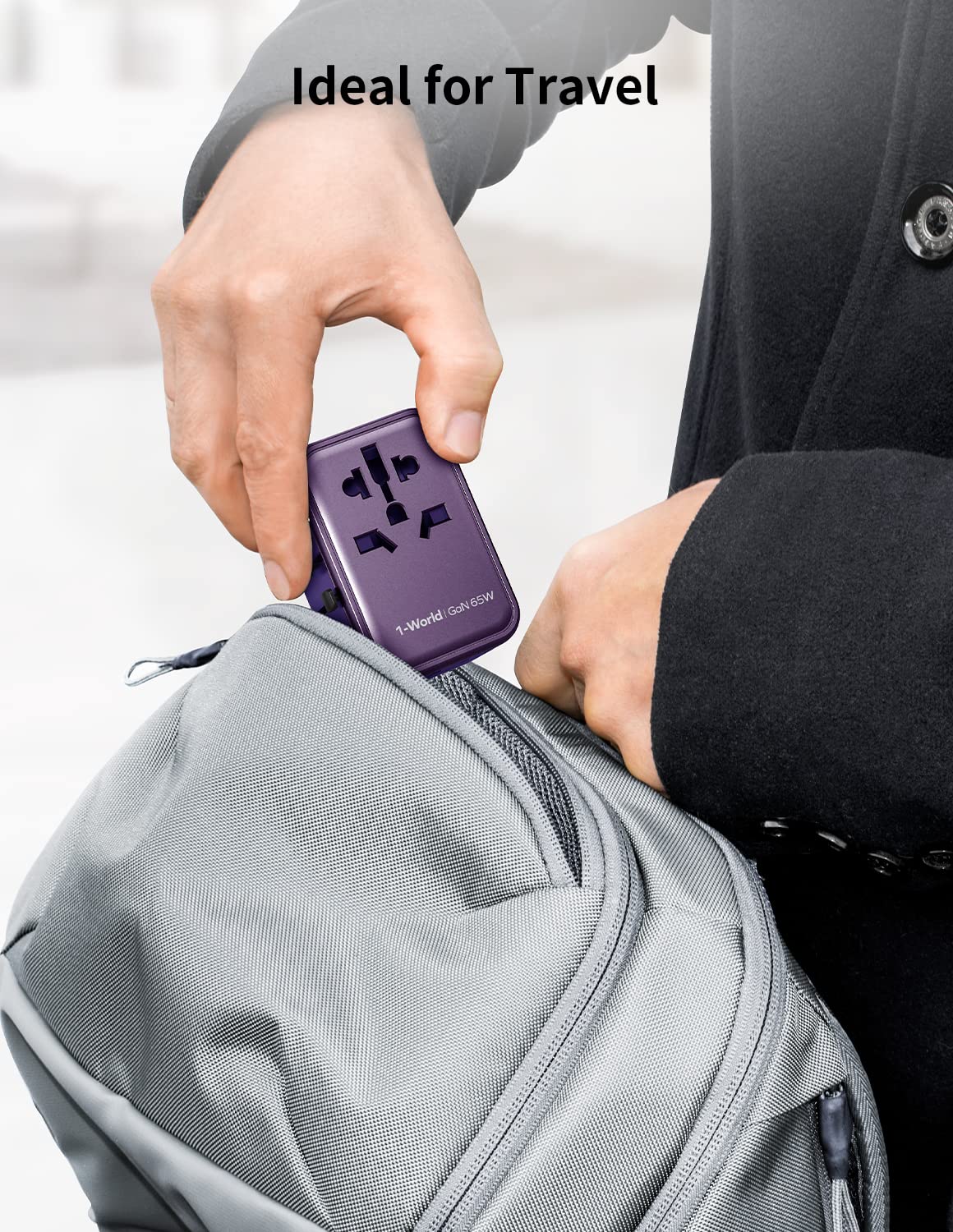 1-World Universal Travel Charger With Built-In Jp/Us, Au, Eu, Uk Sockets. Can Be Used In More Than 150 Countries Around The World. With The Gan Charging Technology, It Supports Up To 65W Fast Charging Capability For Charging Multiple Devices At Advanced Speed While Travelling. Ultra Convenient To Charge 1 Ac Charging Device And 5 Usb Charging Devices At The Same Time.