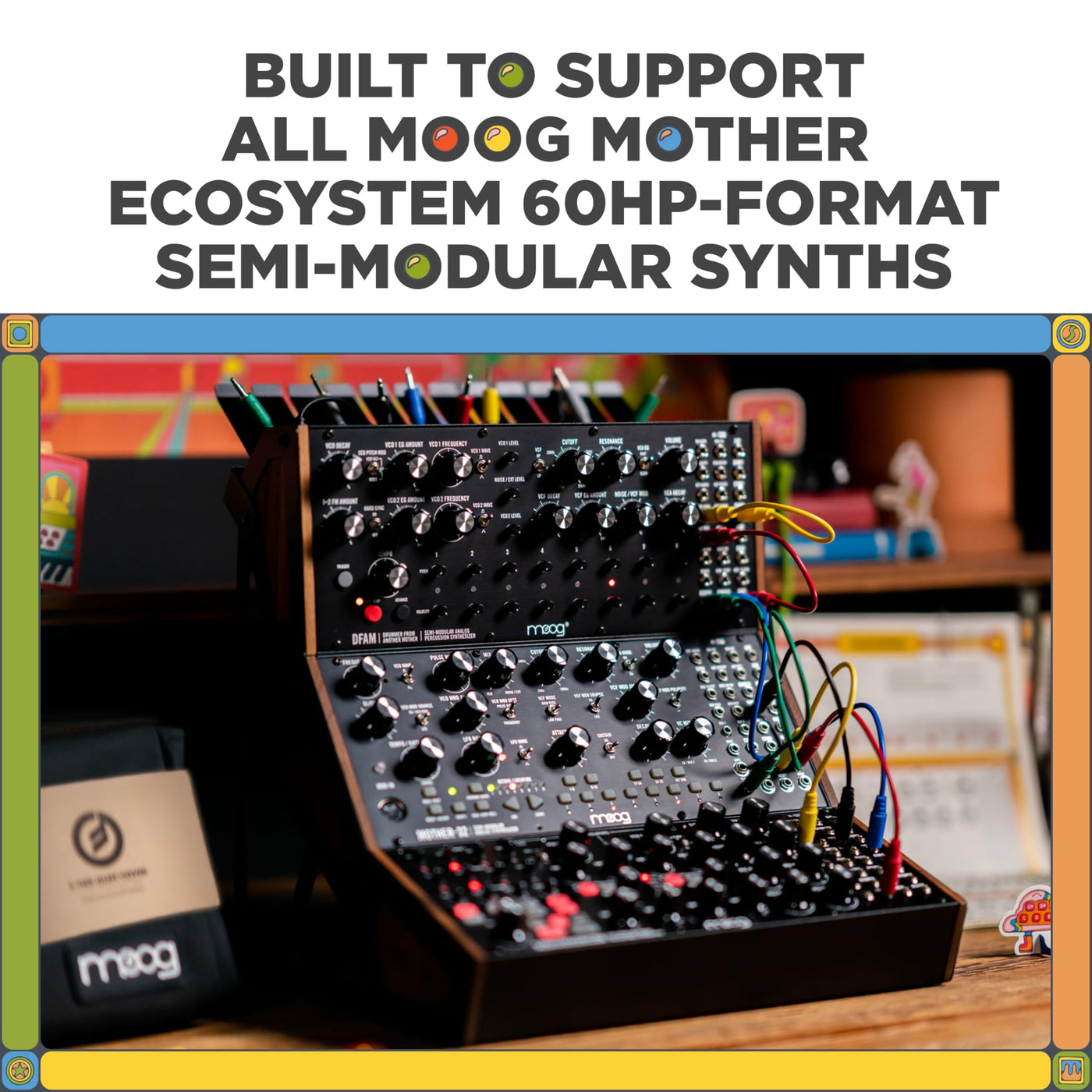 The Moog Sound Studio Accessory Kit Is The 3-Tier Rack Solution Your Mother Ecosystem Synths Have Been Waiting For. Mount Any Combination Of Mother-32, Dfam, Subharmonicon, Spectravox, And Labyrinth Semi-Modular Synths Together Vertically For Maximum Modularity And Synthesis Possibilities.Conveniently Stack All Three Synthesizers And Summing Mixer Together As One Connected System To Maximize Studio Space And Orient Instruments Vertically For Optimal Interconnectivity. Designed For Both Stability And Style, The Rack Not Only Optimizes Your Space But Also Creates An Ergonomic Setup That Makes For Easy Access To All Controls And Patch Points.Each Moog Sound Studio Accessory Kit Includes A Compact Summing Mixer With Three-Way Power Distribution To Provide Flexible Signal Routing And Power Your Entire System Conveniently From A Single Power Supply. Also Included Is A Patch Cable Organizer, Dust Cover, And Of Course, All The Cables Needed To Connect Your Instruments Together.