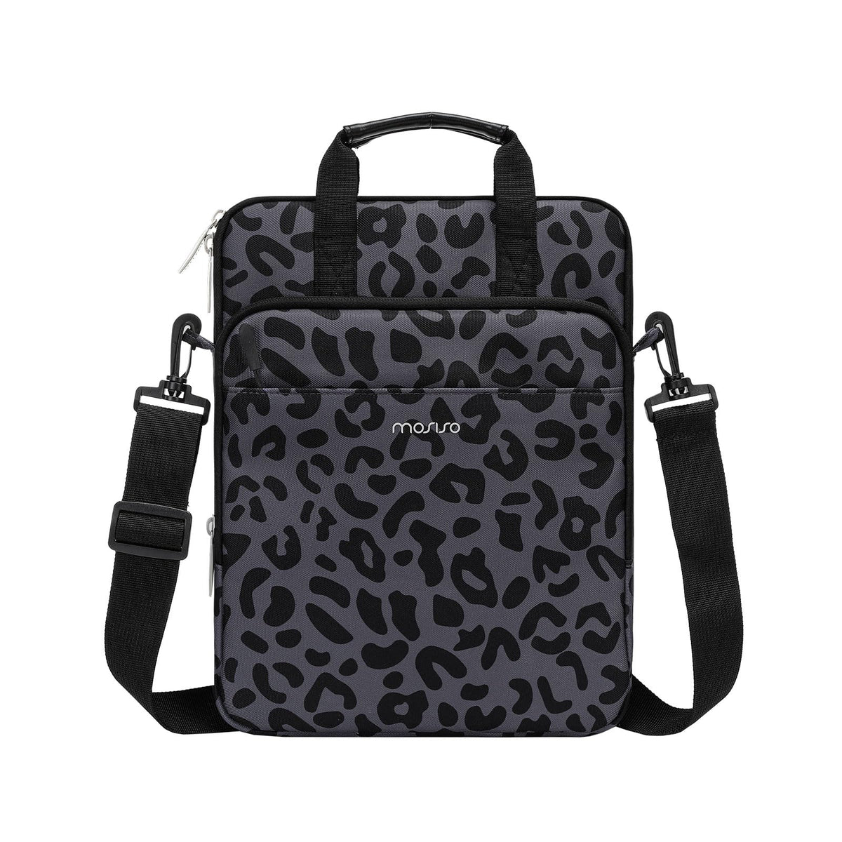 Mosiso 12.9 Inch Tablet Sleeve Case For 13 Inch Ipad Pro M4 & Ipad Air M2 2024, Ipad Pro 12.9 M2 & M1 2022 2018, Galaxy Tab S8+/S9+ 12.4, Leopard Grain Tablet Shoulder Bag With 3 Pockets, Black