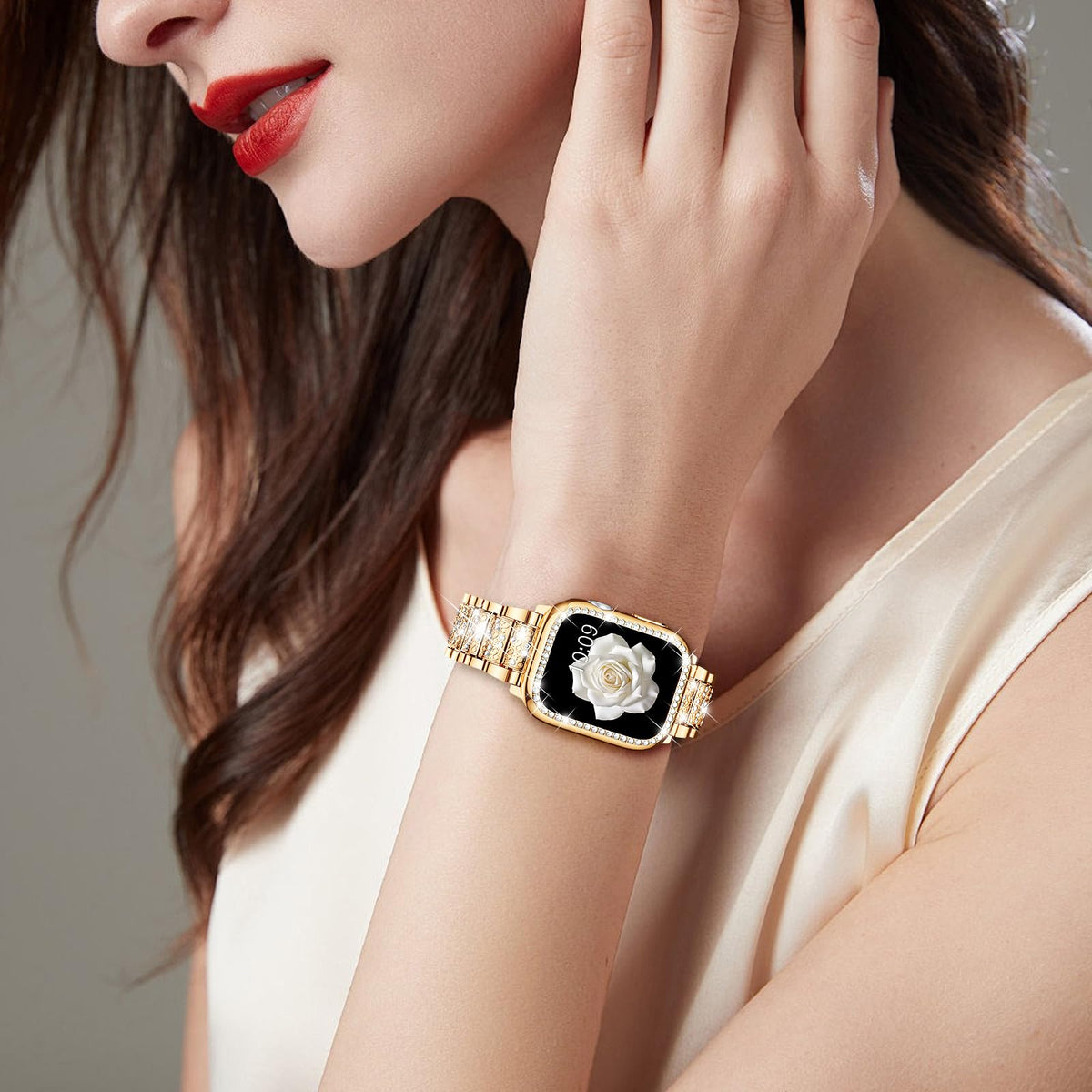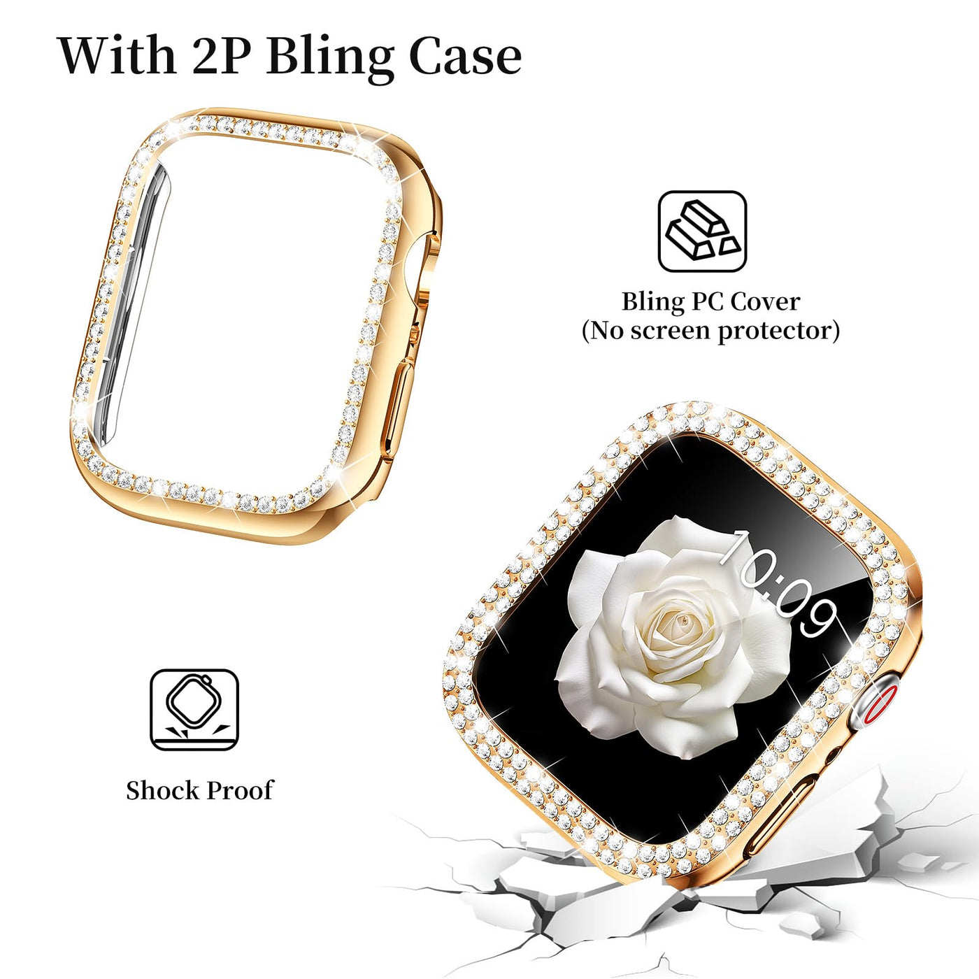 Mosonio Compatible With Apple Watch Band 38Mm With Case Women, Jewelry Replacement Metal Wristband Strap With 2 Pack Bling Pc Pr