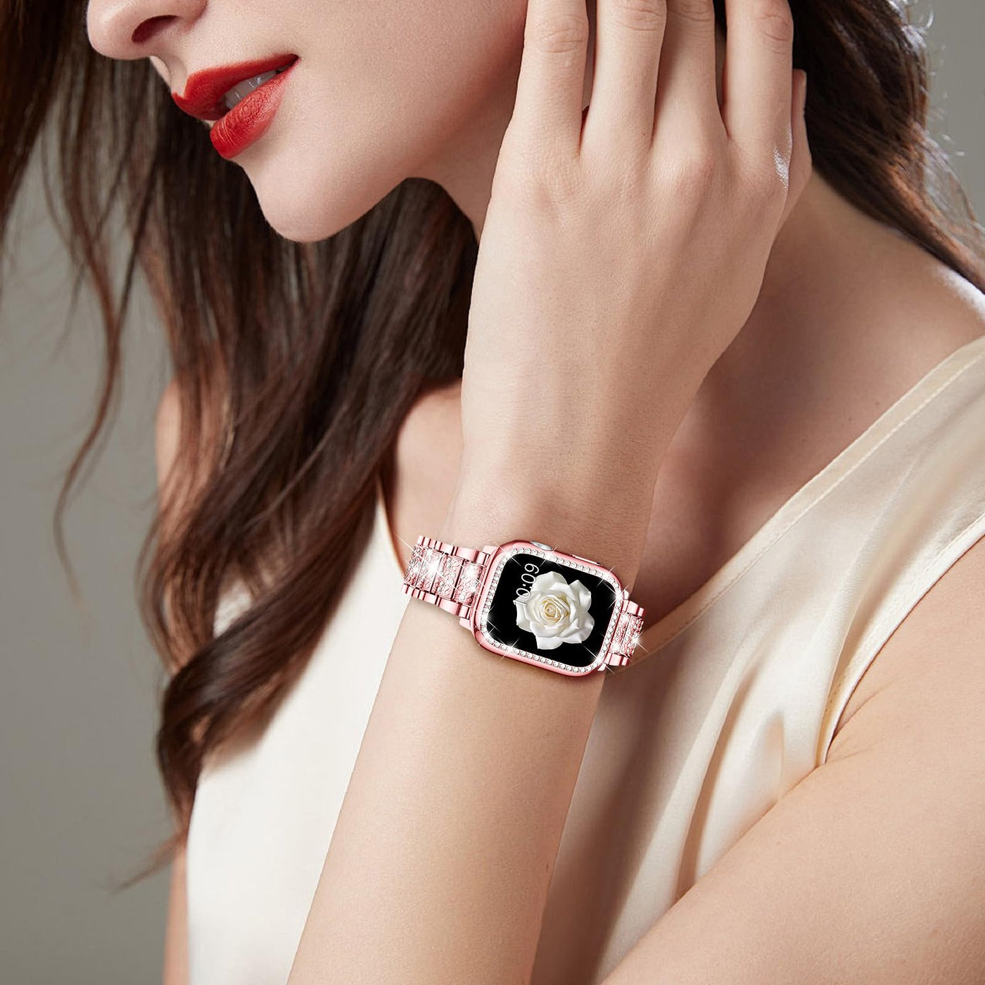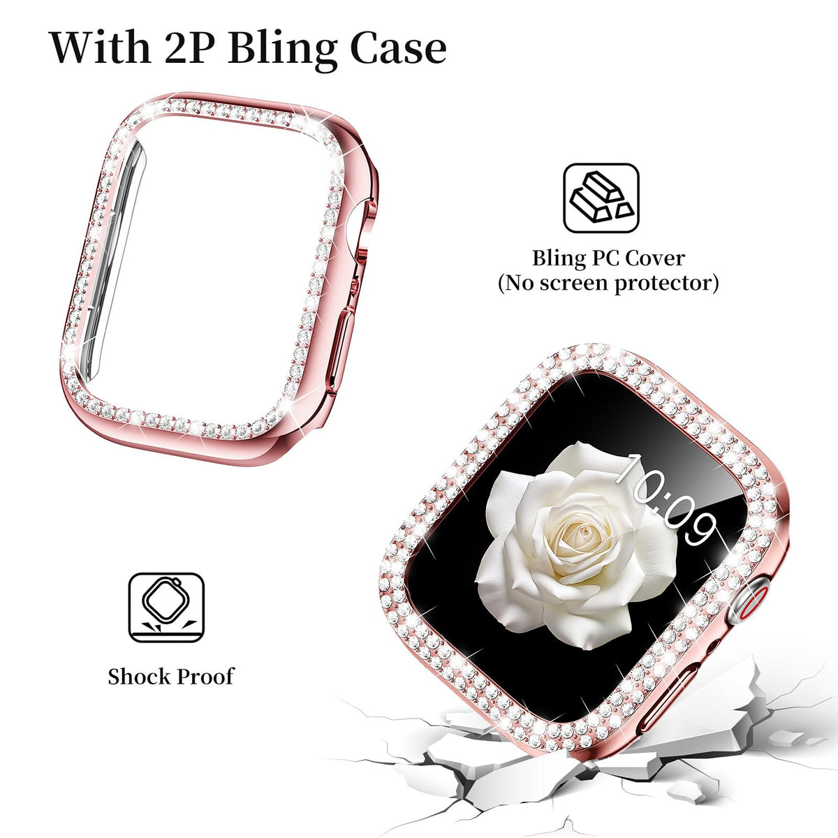 Mosonio Compatible With Apple Watch Band 40Mm With Case Women, Jewelry Replacement Metal Wristband Strap With 2 Pack Bling Pc Pr