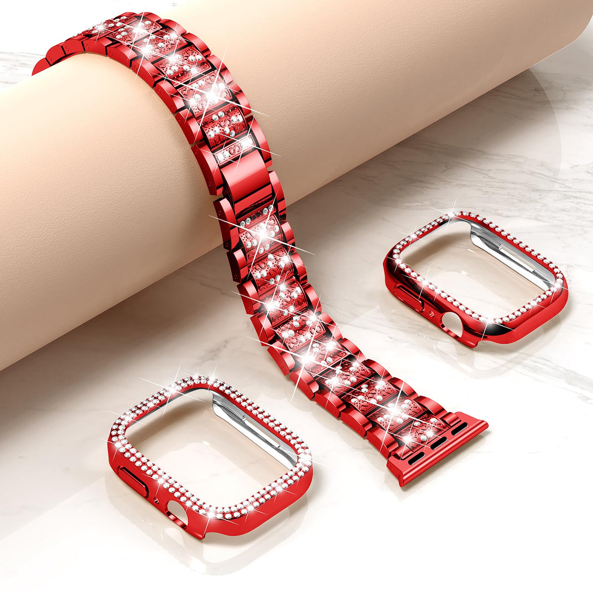 Mosonio Compatible With Apple Watch Band 42Mm With Case Women, Jewelry Replacement Metal Wristband Strap With 2 Pack Bling Pc Protective Cover For Iwatch Series 3/2/1(Red)