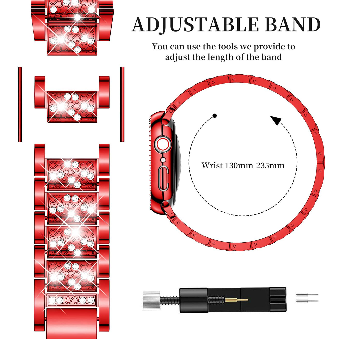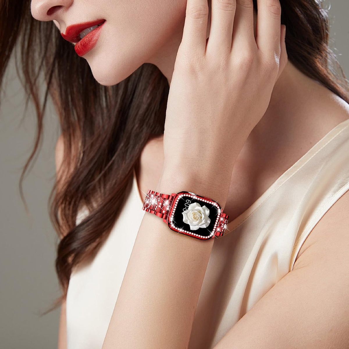 Mosonio Compatible With Apple Watch Band Series 41Mm With Case Women, Jewelry Replacement Metal Wristband Strap With 2 Pack Bling Pc Protective Cover For Iwatch 41Mm Series 9 8 7(Red)