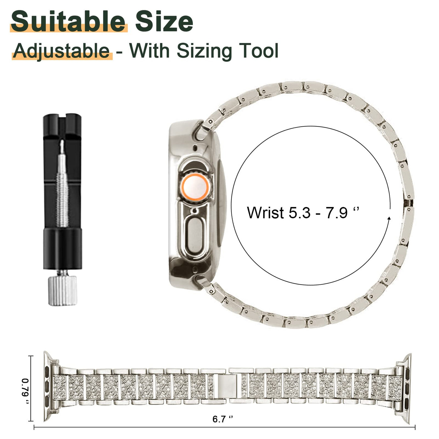 Jewelry Stylish Replacement Band Compatible For Iwatch Series Ultra| Dressing Your Unique Style Watch In Anytime And Anywhere Good Practicability: Unique Design Make All Links Removable, Suitable For Any Size Wrist! Convenient: Equipped With Full Set Tools And Clear Installation Instructions That Keep The Band Easy To Install And Remove. How To Remove/Resize The Links: 1.Put The Replacement Band In The Upgraded Hand-Removing Tool,Make Sure The Arrow Goes Down; 2.Aim The Pin Of The Removing Tool At The Connecting Pin Of The Link You Want To Remove, Rotate The Thumb Screw Of The Hand-Removing Tool To Push The Connecting Pin Down; 3.Select The Length You Want, And Repeat The Step 1-2 To Remove Links; 4.Link Them Back With Connecting Pin And Make Sure The Arrow Goes Up; 5.Aim The Connecting Pin At The Hole Of The Link, And Strike The Pin Slightly By The Bottom Of The Removing Tool (Attention: The Connected Pins Should Not Be Reversed, Or It Easily Being Bent Or Broke When Knocking Back); Note: The Bifurcate Part Of The Connecting Pin Should Always Toward The Direction Of The Arrow.