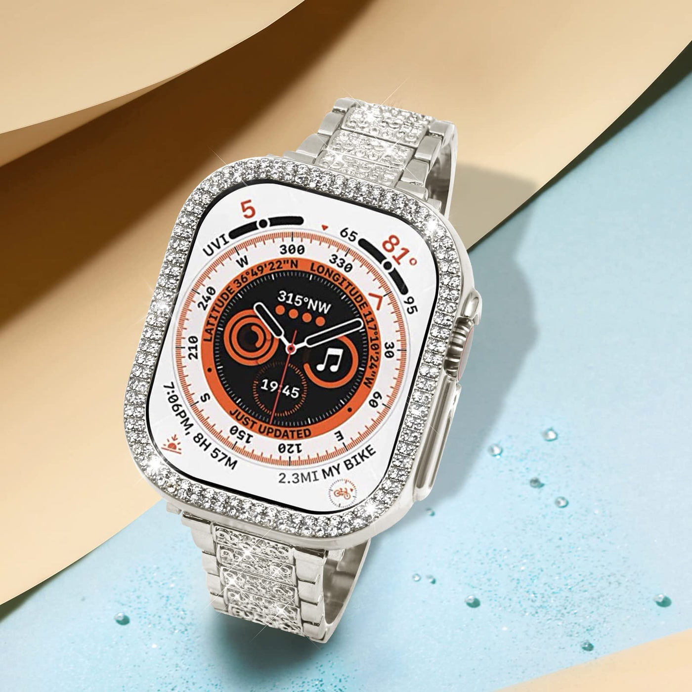 Mosonio Compatible With Apple Watch Band Ultra 2/ Ultra 49Mm With Case Women, Jewelry Replacement Metal Wristband With 2P Pc Pro