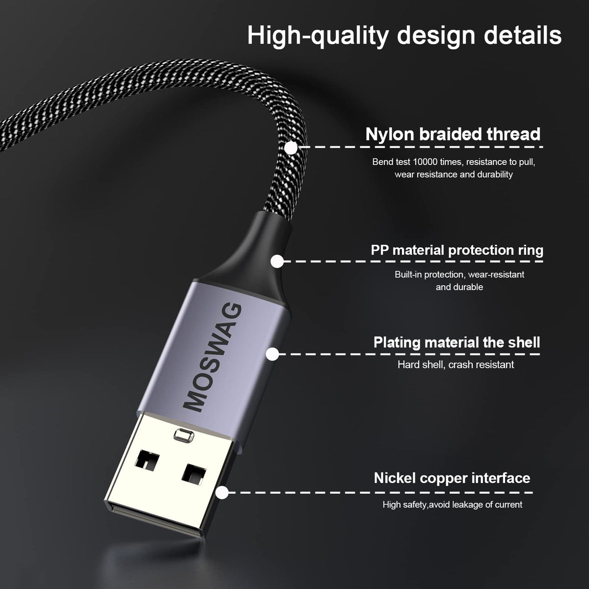 Q: What materials are used in the construction of this audio adapter?A: The MOSWAG USB to 3.5mm Jack Audio Adapter features a durable aluminum shell and a nylon braided cable, ensuring a stable transmission and increased longevity compared to standard plastic adapters.