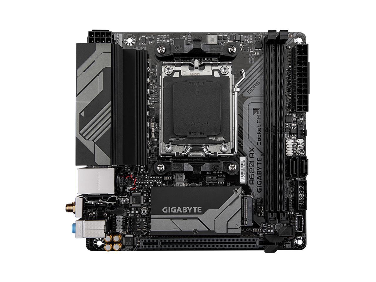 Q: What processors are compatible with the GIGABYTE A620I AX motherboard?A: The GIGABYTE A620I AX motherboard supports AMD Ryzen 7000 Series processors, utilizing the AM5 socket for optimal performance and compatibility.