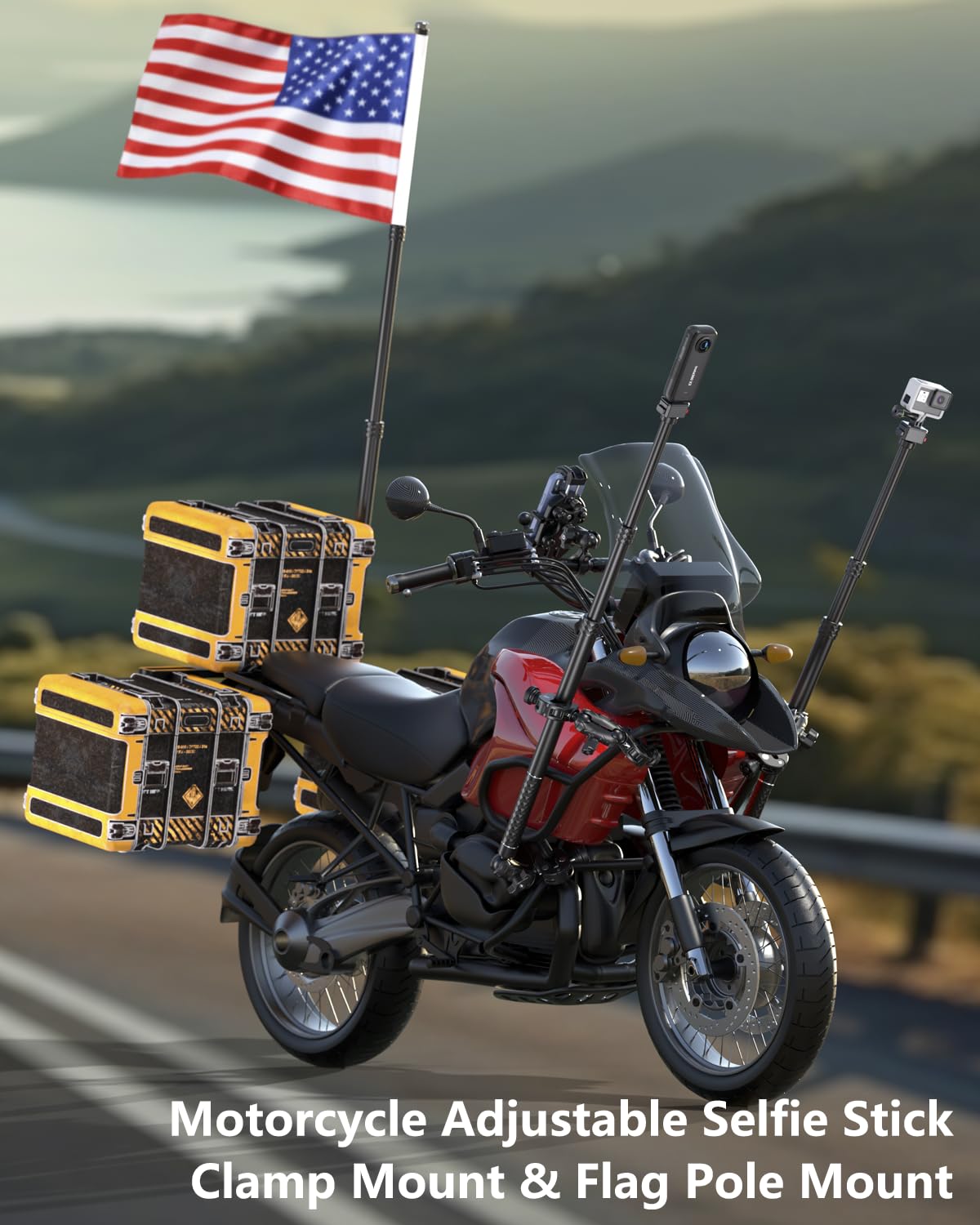 Motorcycle Action Camera Mount Kit For Gopro & Insta360, Aluminum Alloy Selfie Stick With Anti Theft Mounting Base, 360 Rotating