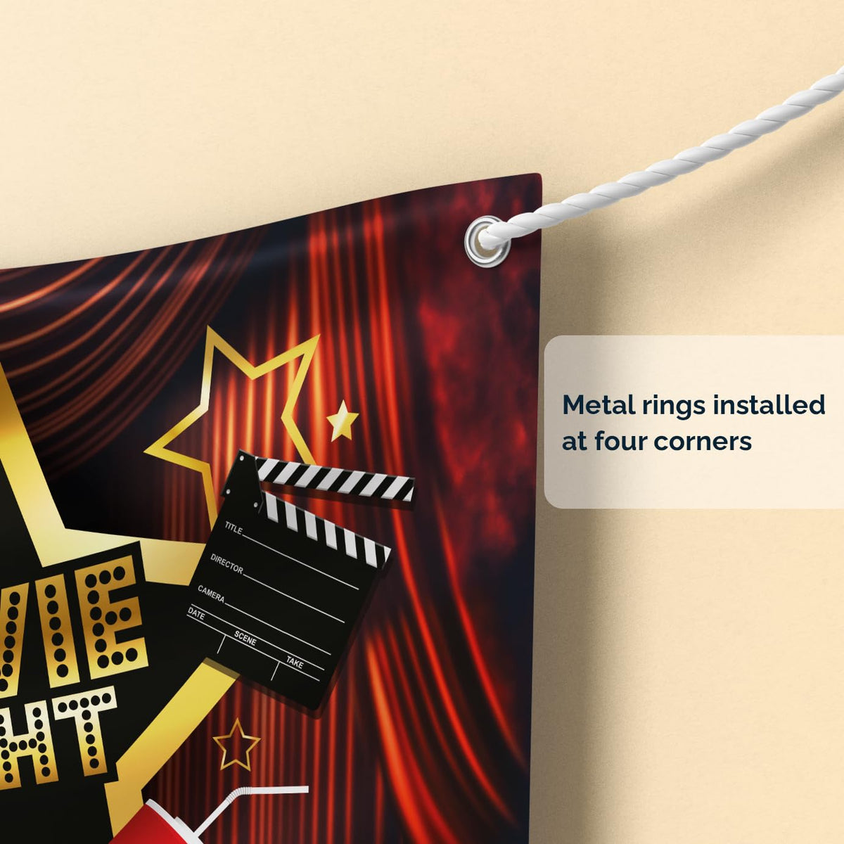 Q: What are some creative uses for the Movie Night Party Backdrop?A: In addition to serving as a stunning photo background, the backdrop can be used as a room tapestry, an elegant curtain, or a striking banner for your refreshment table.