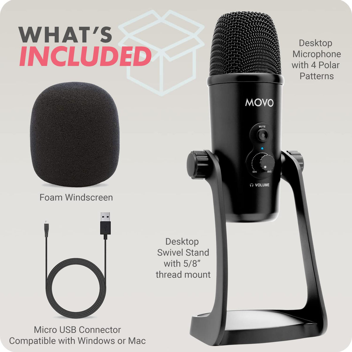 Movo Um700 Computer Condenser Usb Gaming Mic With Adjustable Pickup Patterns Microphone For Pc, Ps5, Podcasting, Streaming, As
