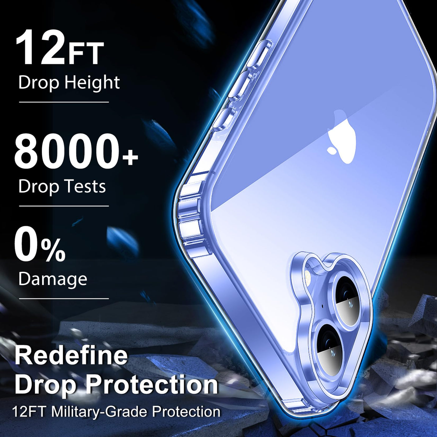 Mozoter For Iphone 16 Plus Case Clear,[Anti-Yellowing] [15Ft Military Grade Drop Protection] Shockproof Bumper Phone Cover,Slim Thin Cute Case For Iphone 16 Plus 6.7 Inch-Clear