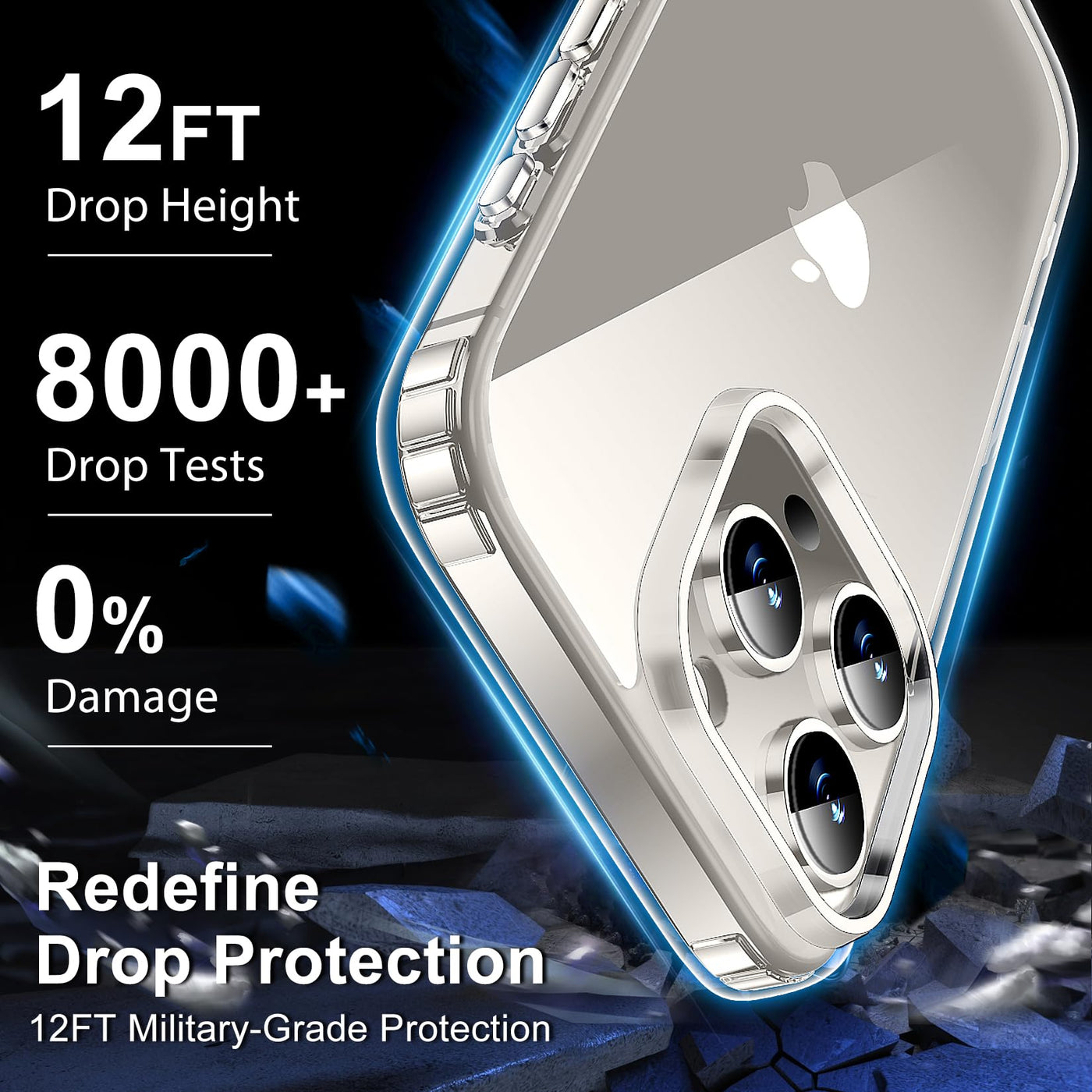Q: What type of protection does the MOZOTER case offer?A: The MOZOTER case provides 12FT military-grade drop protection, thanks to its impact-absorbing bumper and upgraded shock-resistant technology, ensuring your phone stays safe from accidental drops.