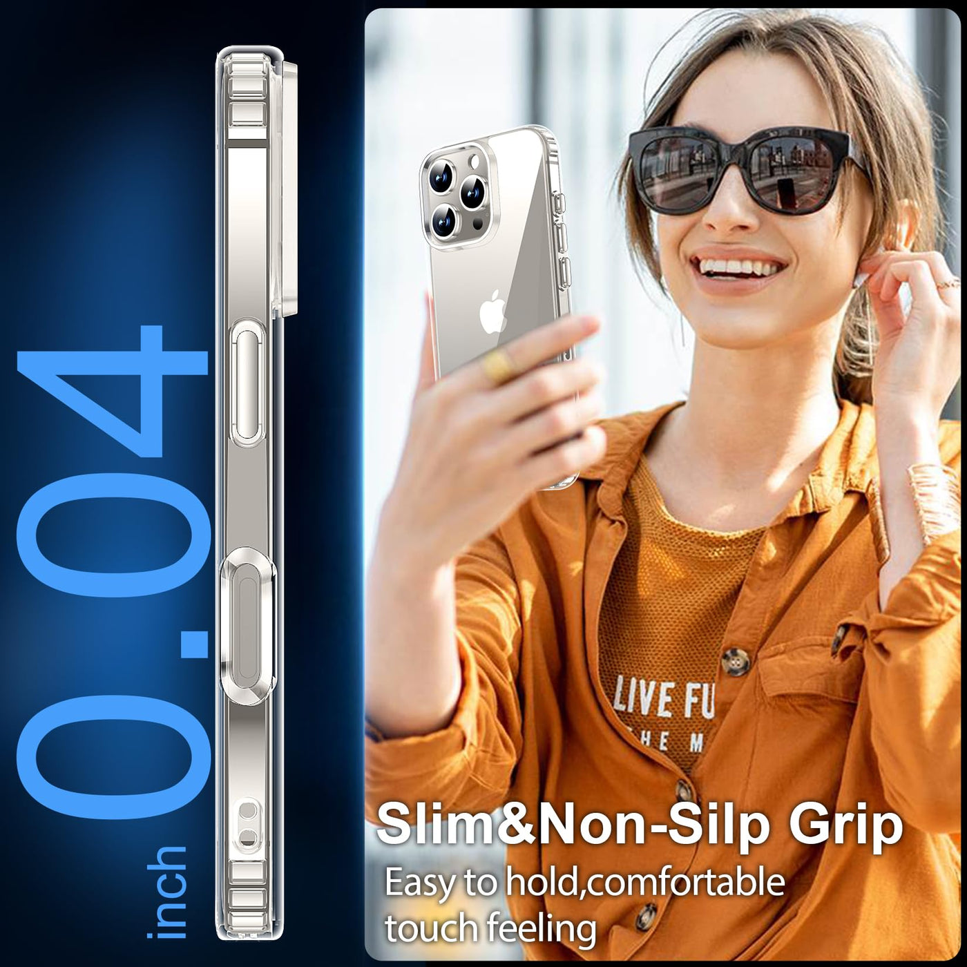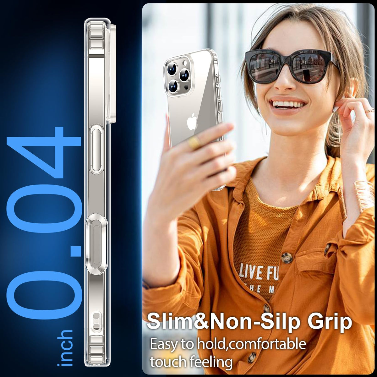 Mozoter For Iphone 16 Pro Case Clear,[Anti Yellowing] [Non Slip] Shockproof Bumper Phone Cover,Slim Thin Cute Case For Iphone 16