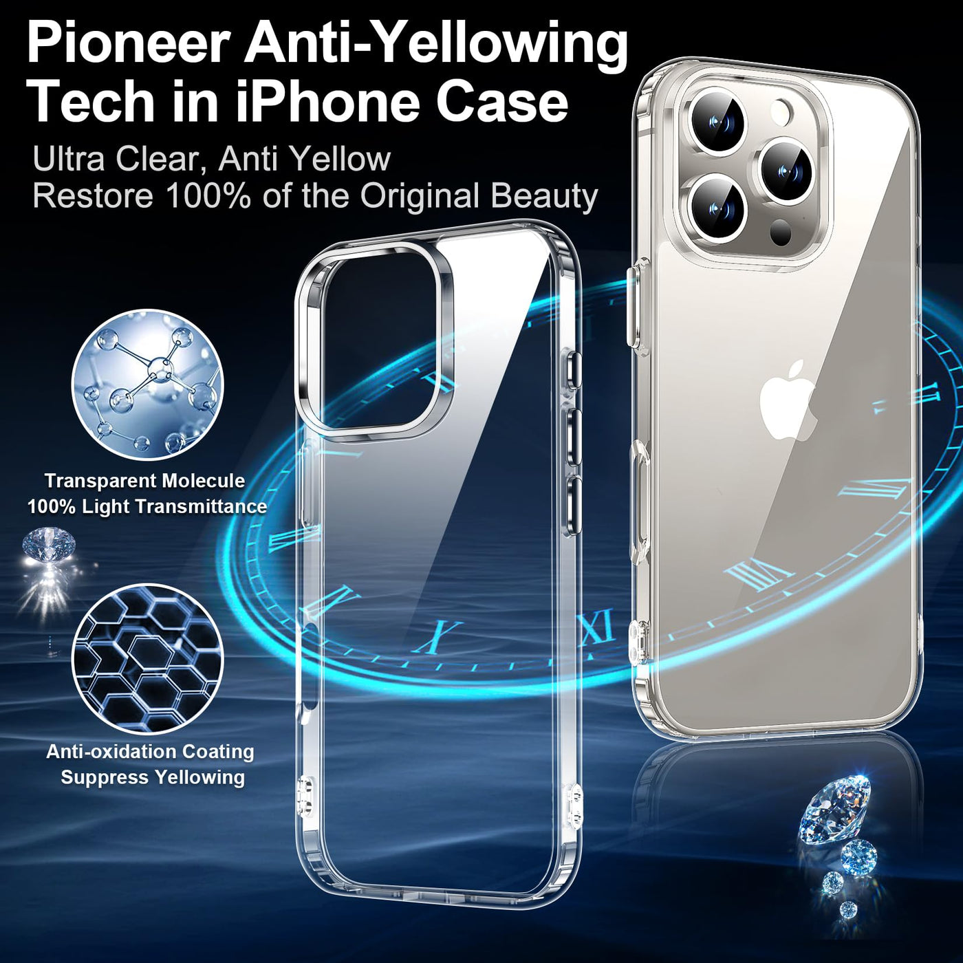 Mozoter For Iphone 16 Pro Case Clear,[Anti-Yellowing] [15Ft Military Grade Drop Protection] Shockproof Bumper Phone Cover,Slim Thin Cute Case For Iphone 16 Pro 6.3 Inch-Clear