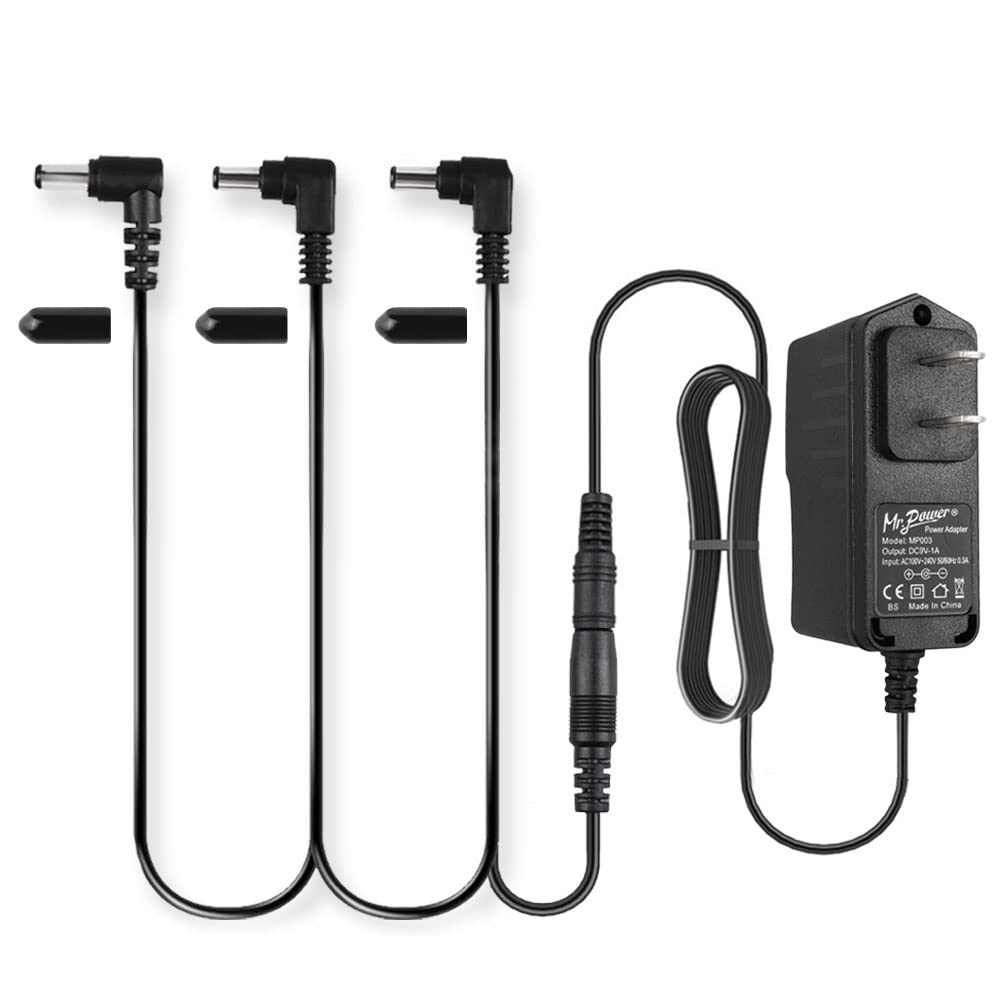 Mr.Power Guitar Effects Power Supply Adapter 9V Dc 1A (1000Ma) With Daisy Chain Cord Cable And Insulated Cap (9V Adapter + 3 Way Cable)