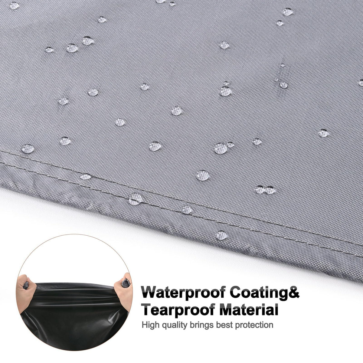 Q: How does the windproof feature work on this AC cover?A: The cover features elastic hem cords that allow for a flexible adjustment at the bottom, enabling a tight and custom fit even on windy days. This design helps to secure the cover in place and prevent it from being blown away.