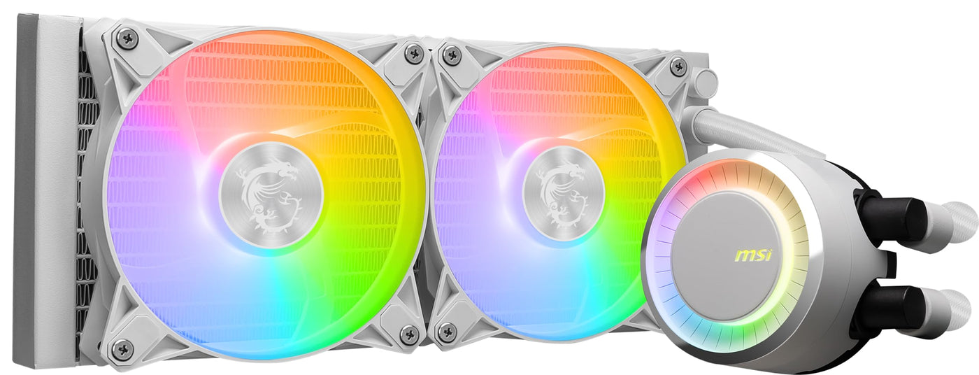 Msi Mag Coreliquid E240 White - Aio Rgb Cpu Liquid Cooler - 240Mm Radiator - Dual 120Mm Argb Pwn Fans.