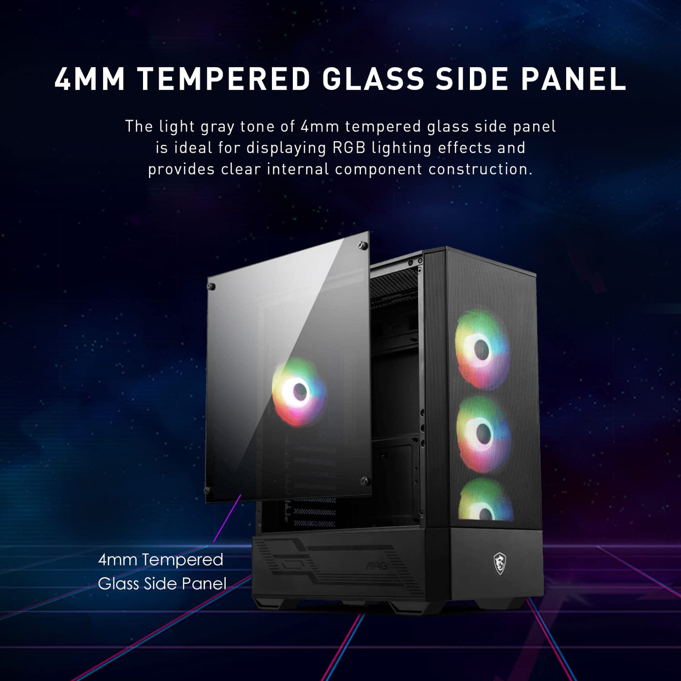 Msi Mid-Tower Pc Gaming Case - Tempered Glass Side Panel - 4 X 120Mm Argb Fan - Liquid Cooling Support Up To 240Mm Radiator X 1 - Mag Forge 112R.