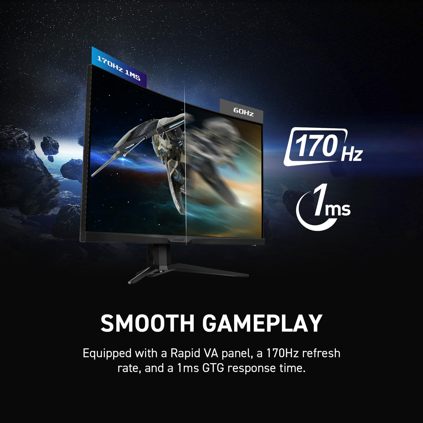 Msi Mag275Cqrf Qd, 27 Gaming Monitor, 2560 X 1440 (Qhd) Rapid Va With Quantum Dot, 1 Ms, 170Hz, Freesync Premium, Hdr Ready, 1000R, Hdmi, Displayport, Tilt And Height Adjustable.