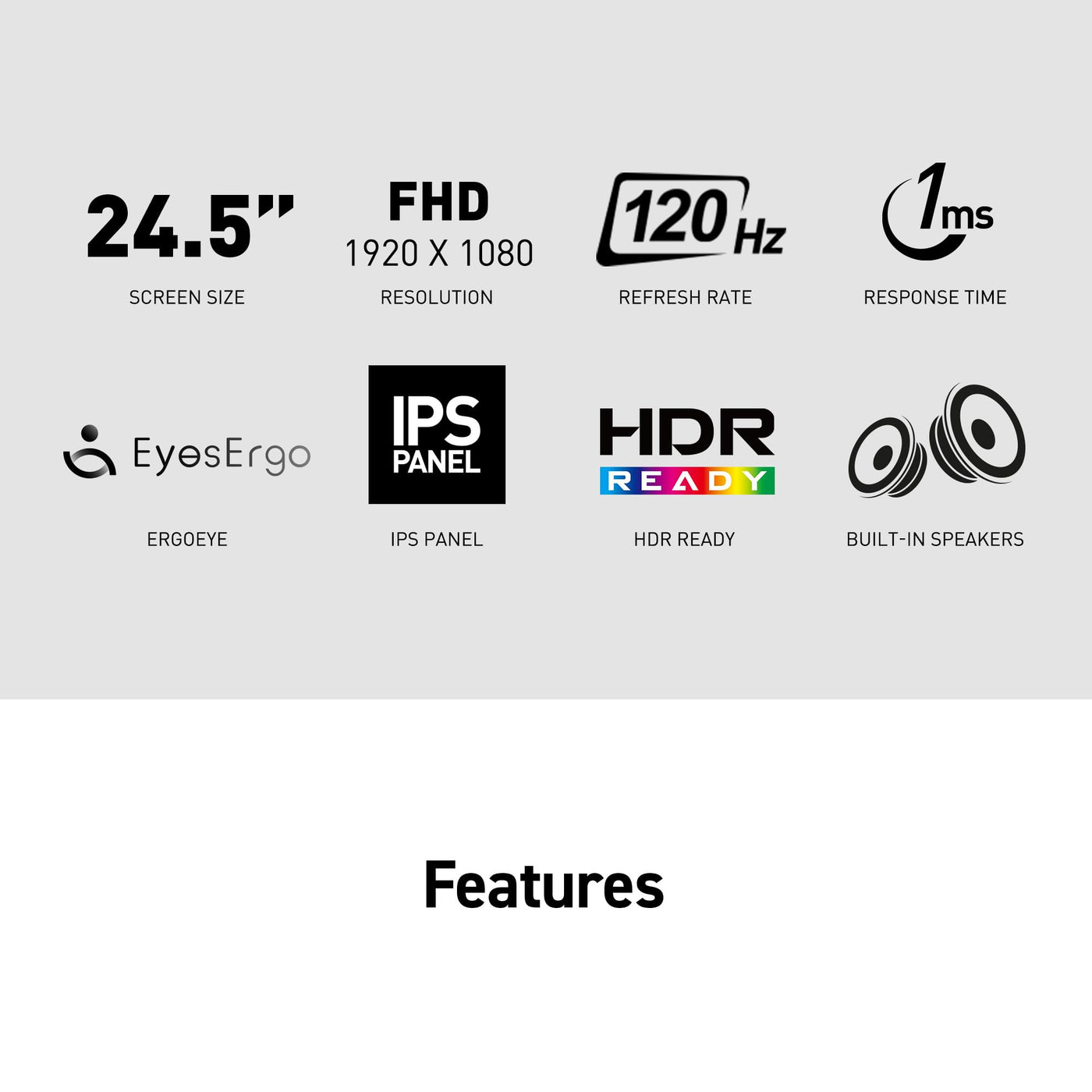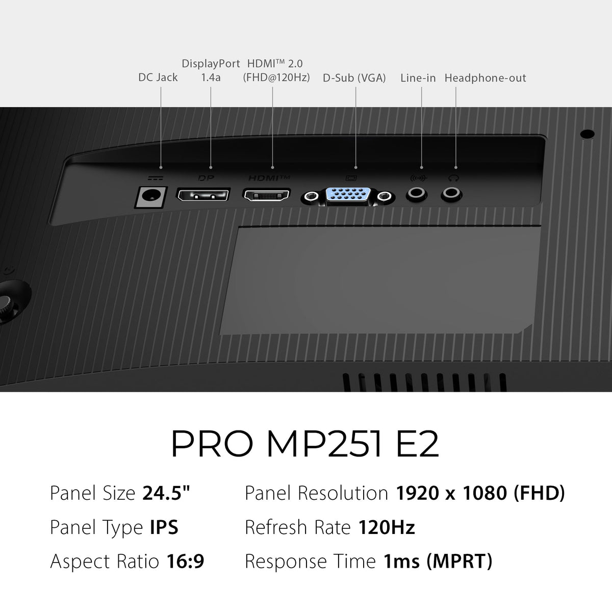 Msi Pro Mp251 E2 24.5 Inch Ips 1920 X 1080 (Fhd) Gaming Office Monitor, 120Hz, Adaptive Synch, Hdr Ready, Hdmi, Vga Port, Displa