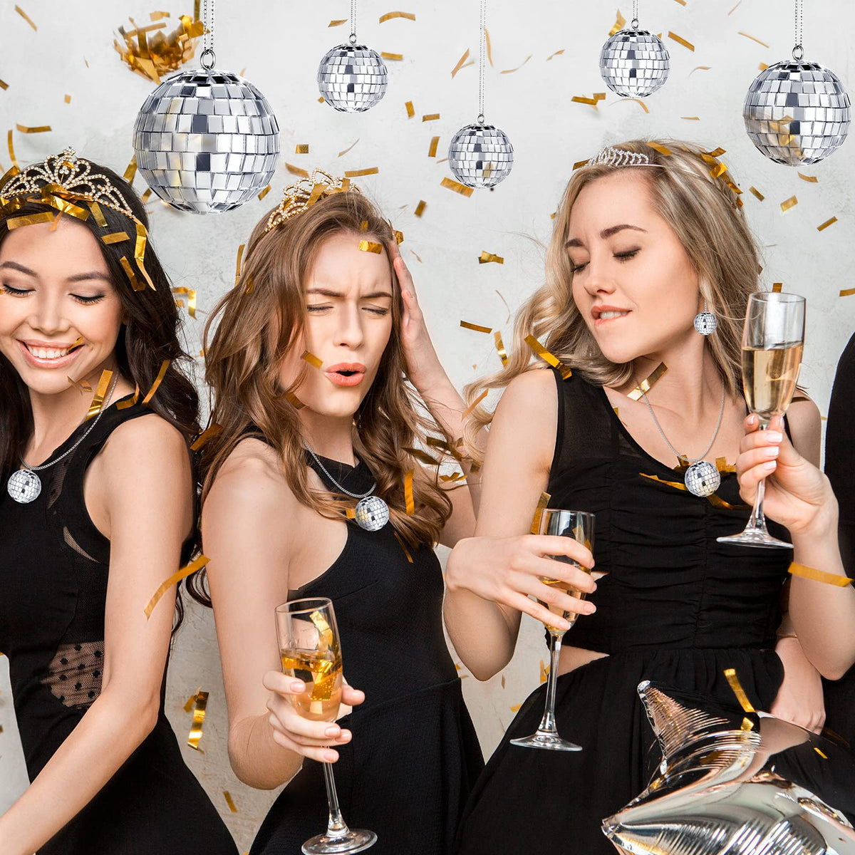 Mtlee Christmas Disco Balls Ornaments Hanging Mini Mirror Disco Balls With Rope Different Size Cake Topper Bulk Disco Themed Par