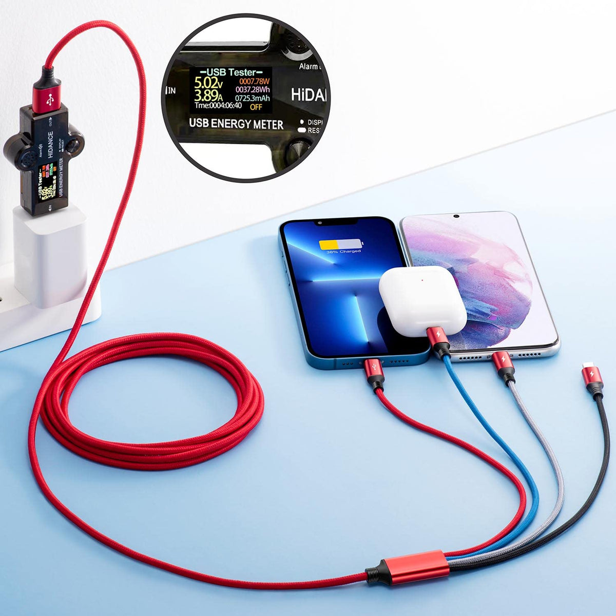 Features: Output: 5V/4A Length: 300Cm (10Ft) Material: Nylon Braided + Aluminium Alloy Packing Including: 4 In 1 Usb Multi Charging Cable Minlu 4 In 1 Multi Usb Charging Cable 4A The Durability Youve Come To Expect From Minlu 4 In 1 Charger Cord-Now With Universal Compatibility. With Dual Ip, Type C And Micro Usb Connectors Built-In, Its The Only Cable Youll Ever Need. Ios-Phone Charger Cable Compatibility With: -Phone 13/12 Pro Max/11 Pro Max/ Xs/ Xr /X/8/8 Plus/7 Plus/7/6/6S Plus/Se/5S/5C/5/Pad Air/Air2/Air 2013, Pad Mini /2/3/4/5 Micro Usb Charging Cable Compatibility With: -Samsung Galaxy Tab,Tab2, Tab3,Tab4, Samsung S2, S3, S3 Mini,S4/5/6 Galaxy3/4/5/6 -Nexus/Htc/Moto/Nokia/Sony/Honor/Oppo/Huawei/Kindle/Bluetooth Speakers/Mp3/Cameras/E-Readers/ Power Bank And Mp3,Mp4,Ps4, Xbox, Ps Vita, Gopro Gp More. Type C Charger Cord Compatibility With: -Samsung Galaxy S22/S21/S20/S10/S9/S9 Plus/S8/S8 Plus/S7/Note 8/9/10/A8/A8 Plus -Huawei P10 P20 P30 P40 Nova2 P9 P20 P20Pro Mate20 Mate20 30 40 -Lg/G5/ G6/V20/V30/Moto Z Force/Moto Z2 Play/Google Pixel/Xl/2/2 Xl And Nintendo Switch Blackberry Meizu More. Please Note: (1) Please Use 5V/3.0A Charger When Charging Multiple Devices. (2) Only The Ios Connector Supports Charged And Transfer Data(480Mbps), The Usb-C And Micro Usb Connector Can Only Be Charged And Does Not Support Data Transmission.