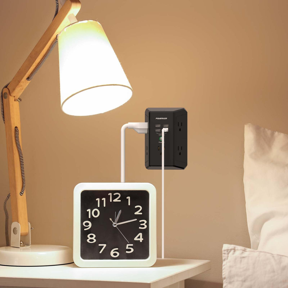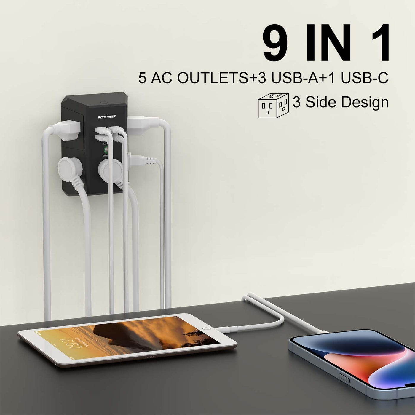 Multi Outlet Extender Surge Protector Poweriver Multi Plug Wall Outlet With 5 Ac Outlets And 4 Usb Ports(1Usb C), 1680 Joules,