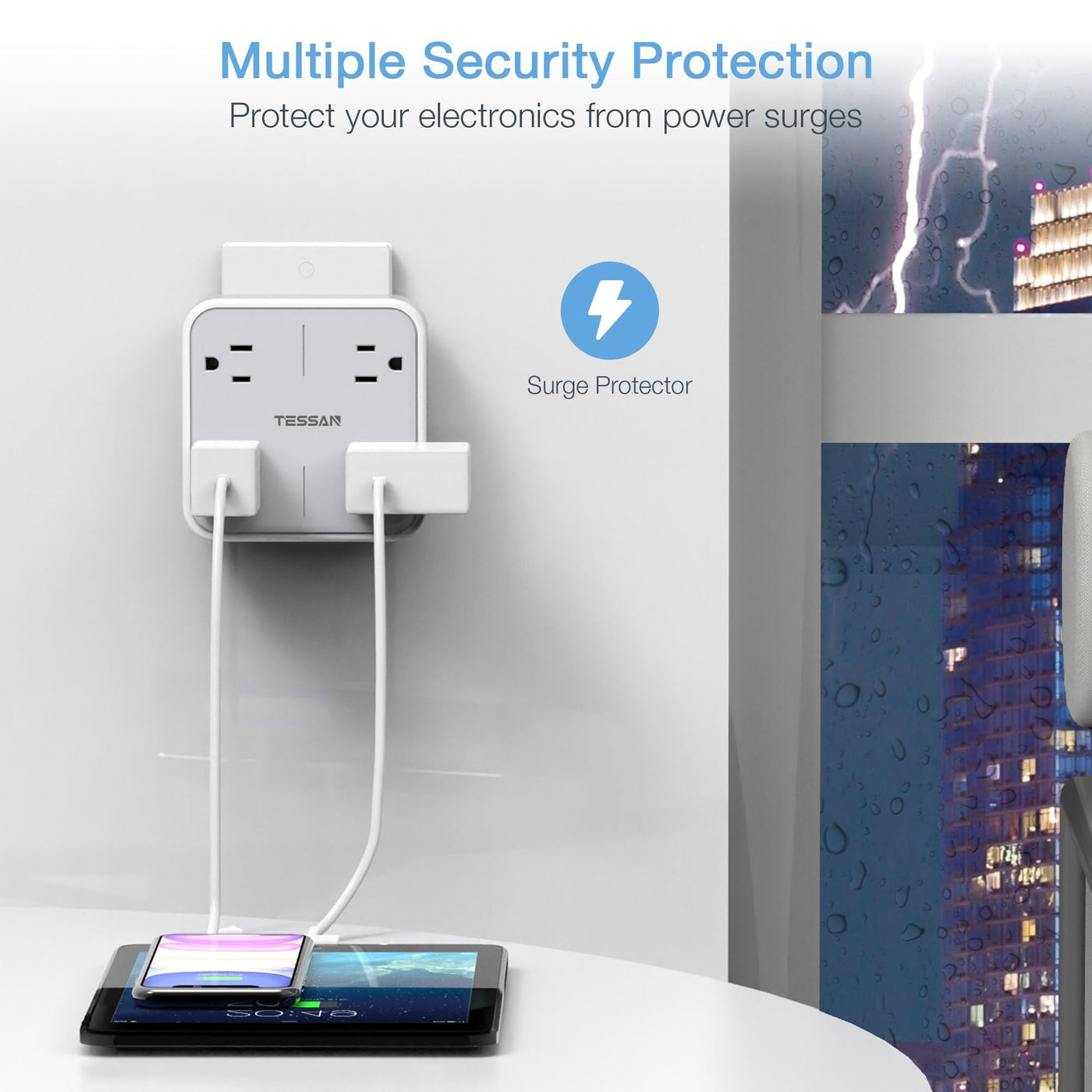 Q: Does the TESSAN plug expander provide surge protection?A: Yes, the TESSAN plug expander is equipped with surge protection, which helps safeguard your electronics from power surges and spikes, ensuring reliable and safe charging.