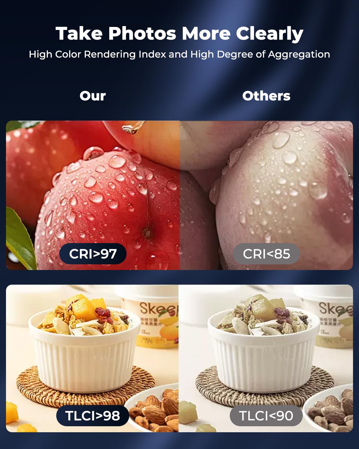Q: What makes the MUNBYN Light Box different from other photography tents?A: The MUNBYN Light Box stands out with its high CRI of 97+, ensuring accurate color reproduction, along with its user-friendly design that includes a sliding cover for easy access and six interchangeable backgrounds.