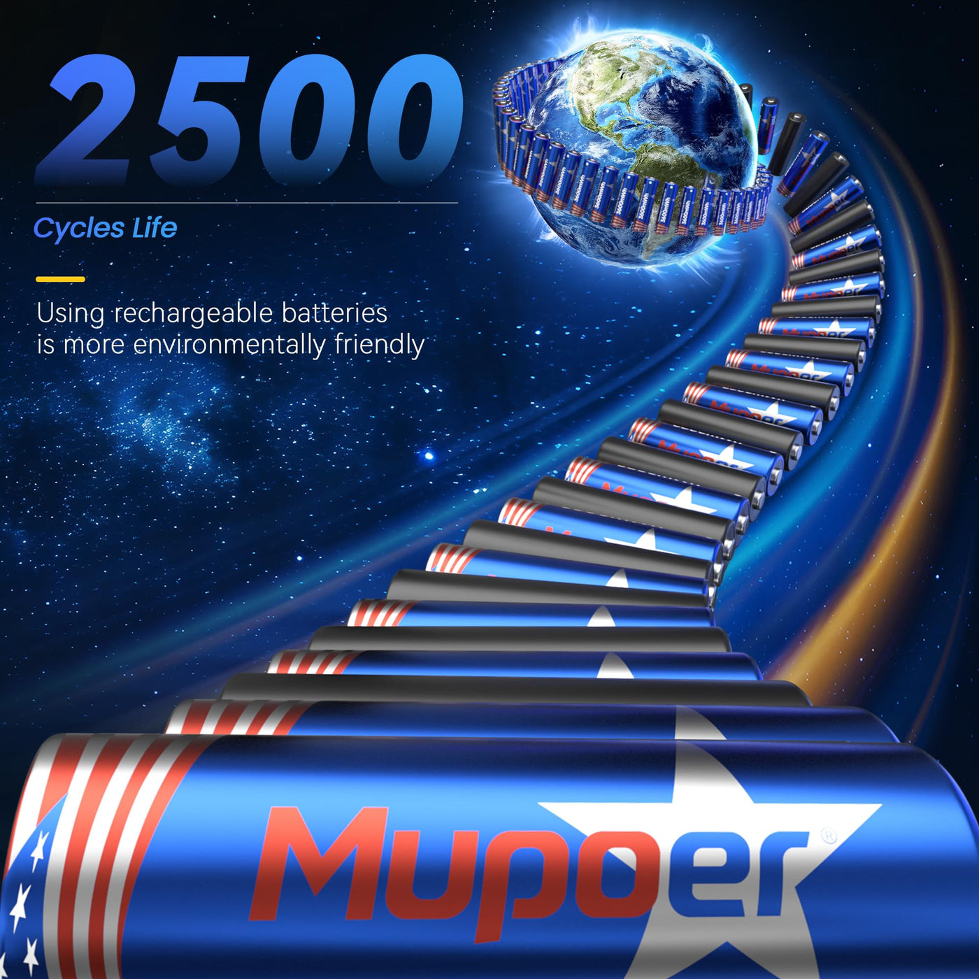 Q: How do I ensure the Mupoer batteries last longer?A: To maximize the lifespan of Mupoer batteries, avoid overcharging and store them in a cool, dry place. They can be charged up to two thousand five hundred times.