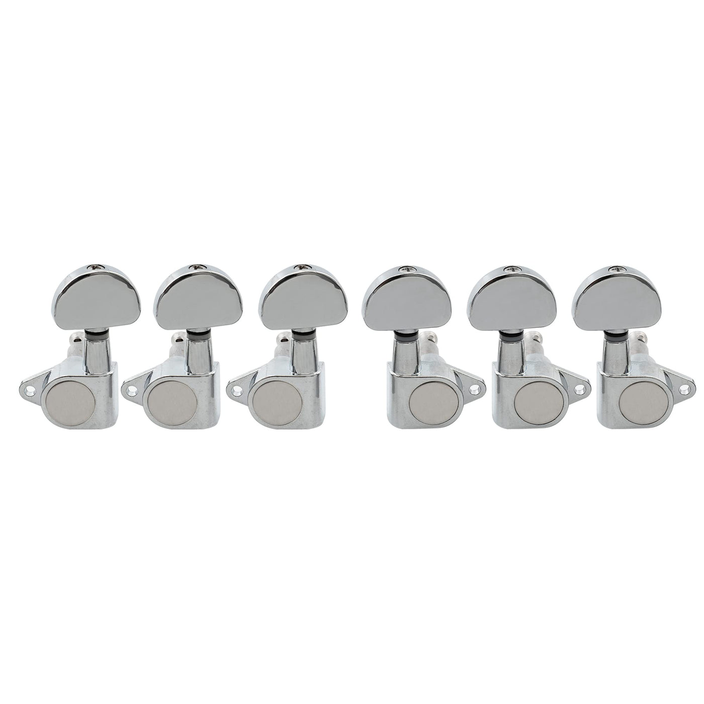 Sealed Tuning Machines With Half Moon Button For Gibson Les Paul Epiphone Guitar It Will Fit Standard 1332 Inch (10Mm) Peg Holes Material: Alloy Metal Color: Chrome Gear Ratio 15:1 3X3 Tuners Set Nut,Ferrule,Screws Included Package Included:6 X Guitartuning Pegs(3R+3L)