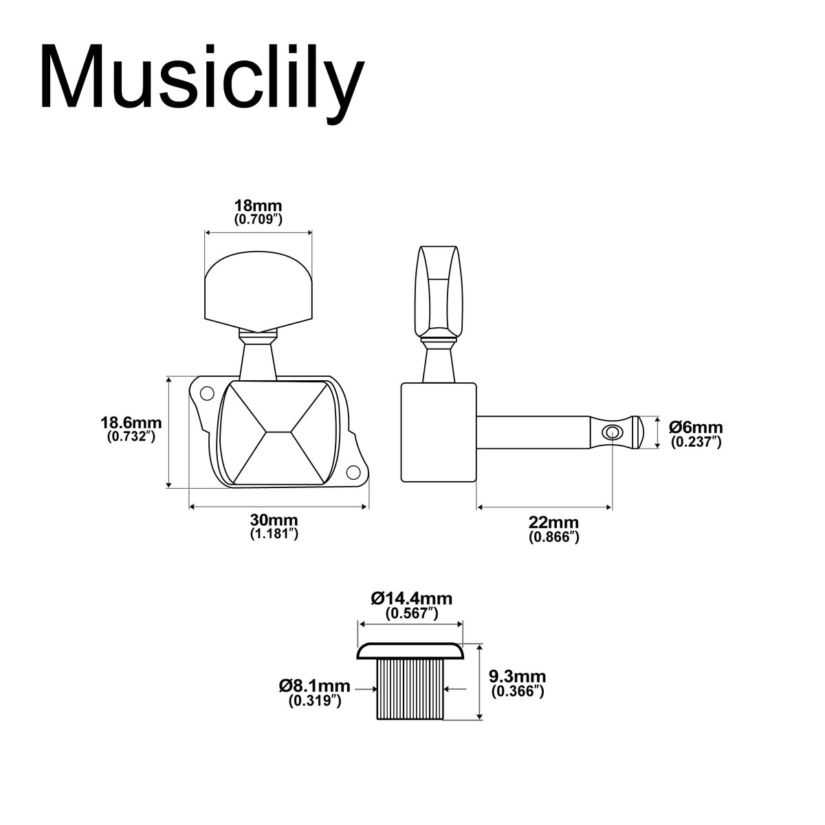 Musiclily 6 Inline Semi Sealed Electric Guitar Machine Heads 6R Tuning Pegs Keys Tuners Set For Fender Squier Strat Replacement,